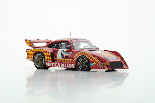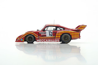 Ci vorrebbe un\’intera sezione del blog per seguire tutto, e ancora non ci sarebbe la certezza di non essersi fatti sfuggire qualcosa. Questo modello, però, è particolarmente interessante: si tratta della Porsche 935 Gruppo 5 col frontale piatto e aerodinamico che corse anche a Le Mans nel 1981, già uscita nel catalogo Spark (S4425). Ora, nella serie tedesca (SG360), Spark ha realizzato la variante rossa sponsorizzata da Meccarillos che prese parte alla gara DRM di Zolder nel 1980 con Claude Haldi. L\’edizione è limitata a 500 esemplari numerati.