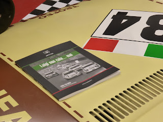 | Il libro di Francesco Parigi sul cofano dell\’Alfasud Trofeo di Luigi Calamai. |