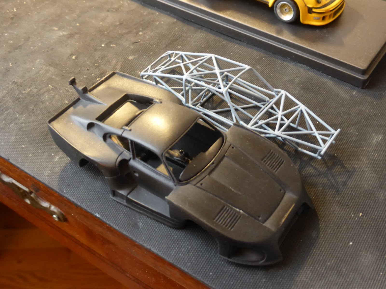 | Il telaio della 935 K4 accanto alla carrozzeria di un kit Starter. Le dimensioni tornano. |