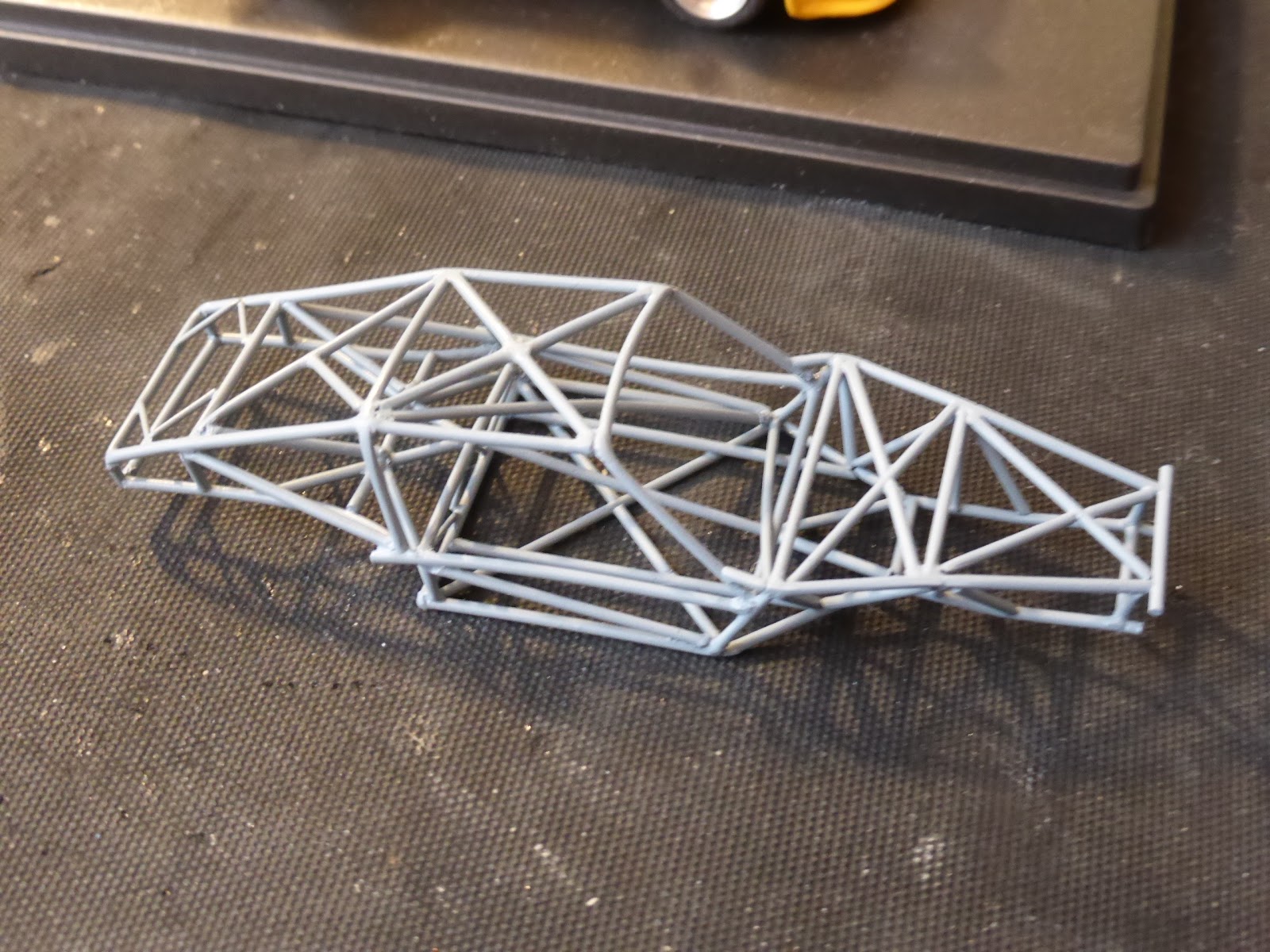 Per i telai, Martini prende sempre le misure partendo da disegni e foto originali, ma non manca mai di tener presente un modello della vettura in scala 1:43, per non perdere troppo contatto con il contesto della riproduzione. Diversamente si rischierebbe di avere un risultata magari formalmente corretto ma lontano, dal punto di vista visivo, dal modello completo in 1:43. Questo telaio della K4 è stato tutt\’altro che semplice nella realizzazione, pieno com\’è di elementi diagonali e caratterizzato dallo sbalzo posteriore concepito per ospitare il motore in posizione portante.