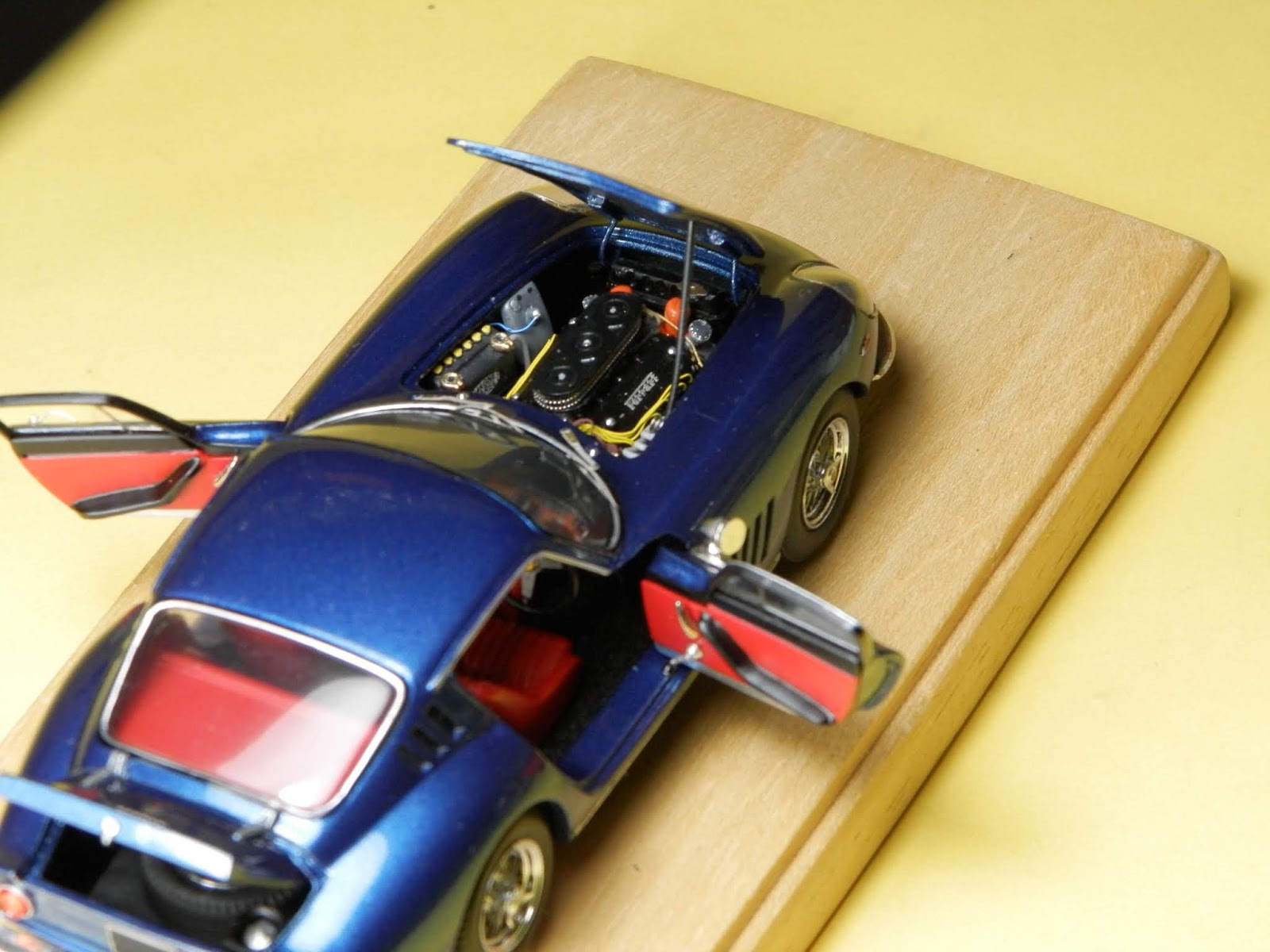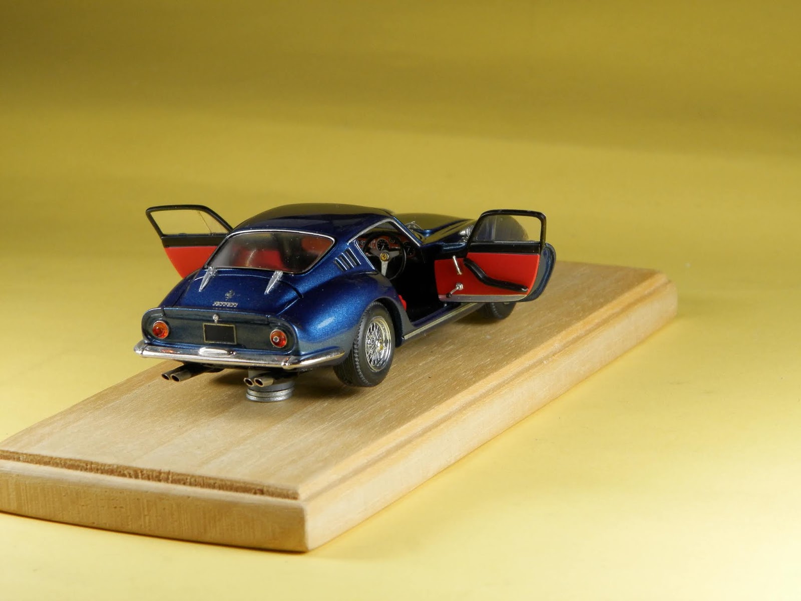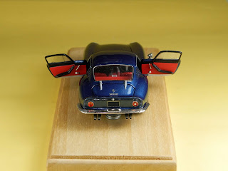 Un bellissimo blu metallizzato combinato agli interni rossi contraddistingue questa Ferrari 275 GTB realizzata da Claudio Crivellin su base AMR. Il modello ha guida a destra. Particolare cura è stata dedicata alle cerniere a vista del baule posteriore, perfettamente funzionanti. Come sugli altri modelli di Crivellin, perfetta la chiusura delle varie parti della carrozzeria. Il modello è in vendita a questo link: