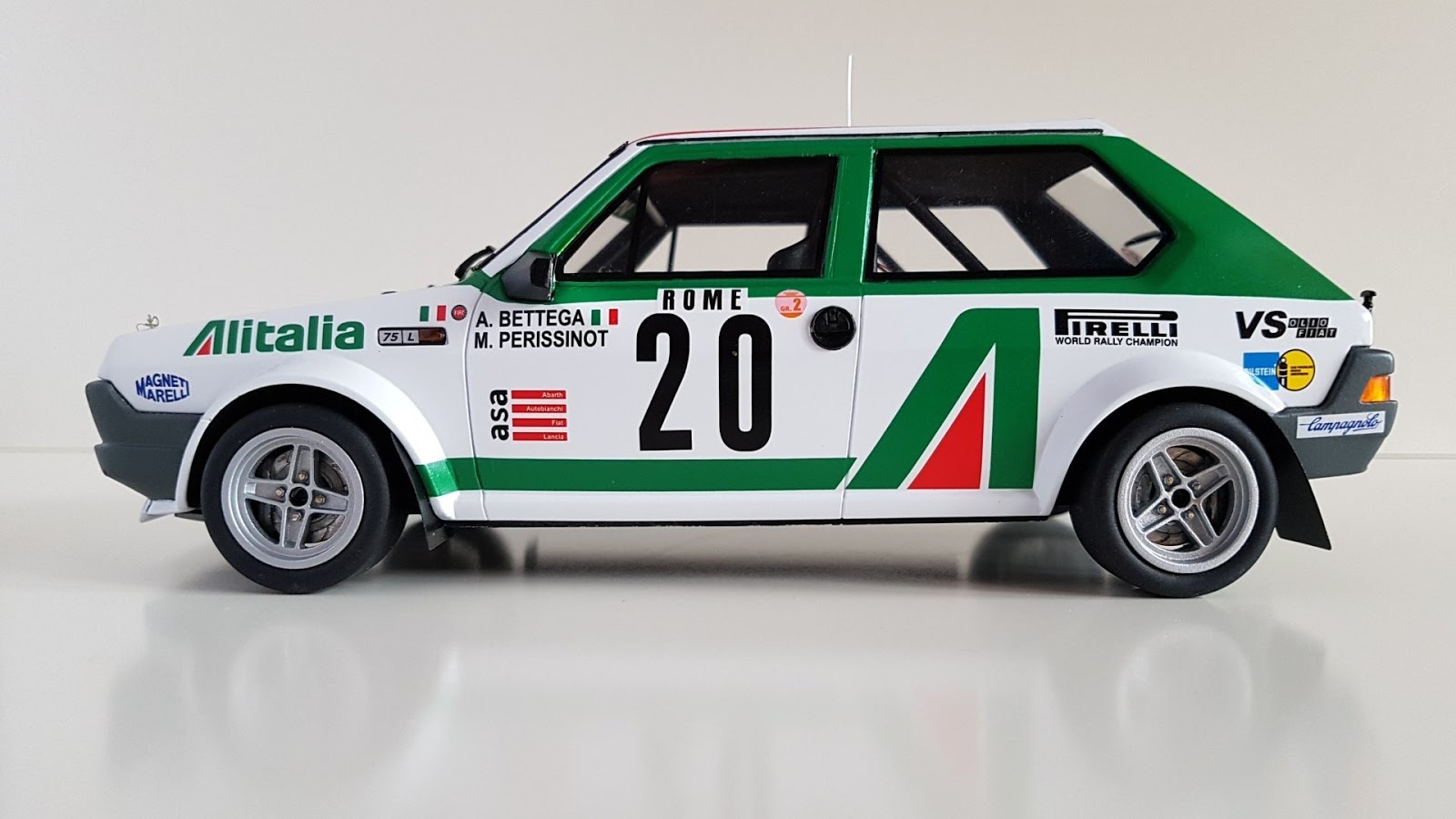 Renato Aimaro, che molti conoscono per il suo passato a Formula43, poi divenuta Racing43, ha presentato un kit in resina scala 1:18, riproducente la Fiat Ritmo 75 Gruppo 2 di Bettega/Perissinot del Rally Montecarlo 1979. Il kit, anche se basilarmente semplice, è molto ben fatto, con numerosi particolari fotoincisi e decals professionali prodotte in serigrafia. Il soggetto, in questa scala, è inedito e il costo del kit è di € 120, cosa che farà sicuramente storcere la bocca a chi è abituato ai resincast cinesi di alcune marche, distribuiti già montati a meno di cento euro. Senza dubbio, ma qui si tratta di un prodotto del tutto artigianale. Non che l\’artigianalità giustifichi a priori ogni prezzo, ma i risultati ottenibili da un bravo modellista da un kit di questo tipo sono sicuramente superiori a quelli che potrebbe raggiungere un qualsiasi resincast, almeno per il momento. Curioso che proprio oggi Laudoracing abbia annunciato per il 2019 svariate versioni della Ritmo Gruppo 2…