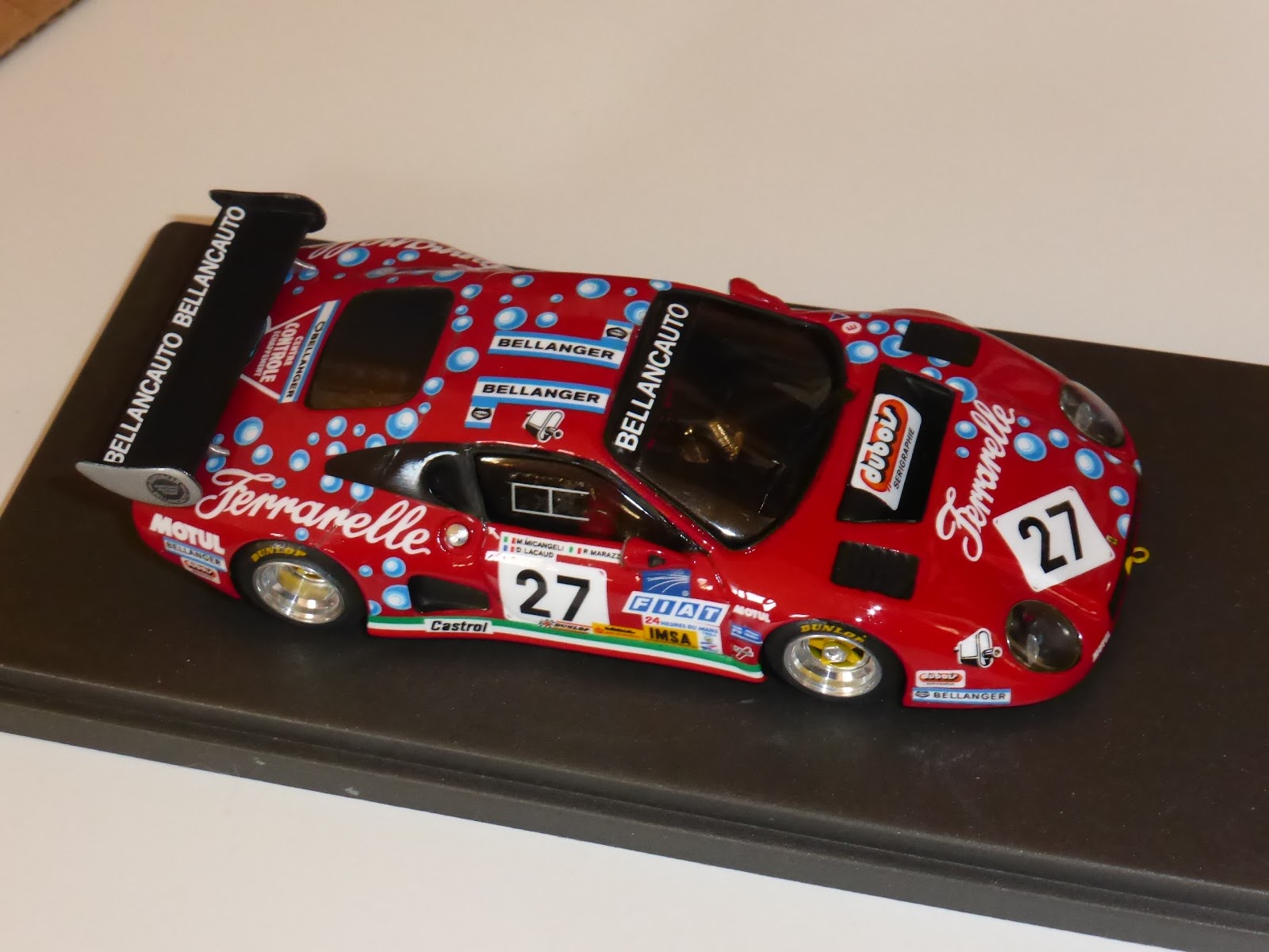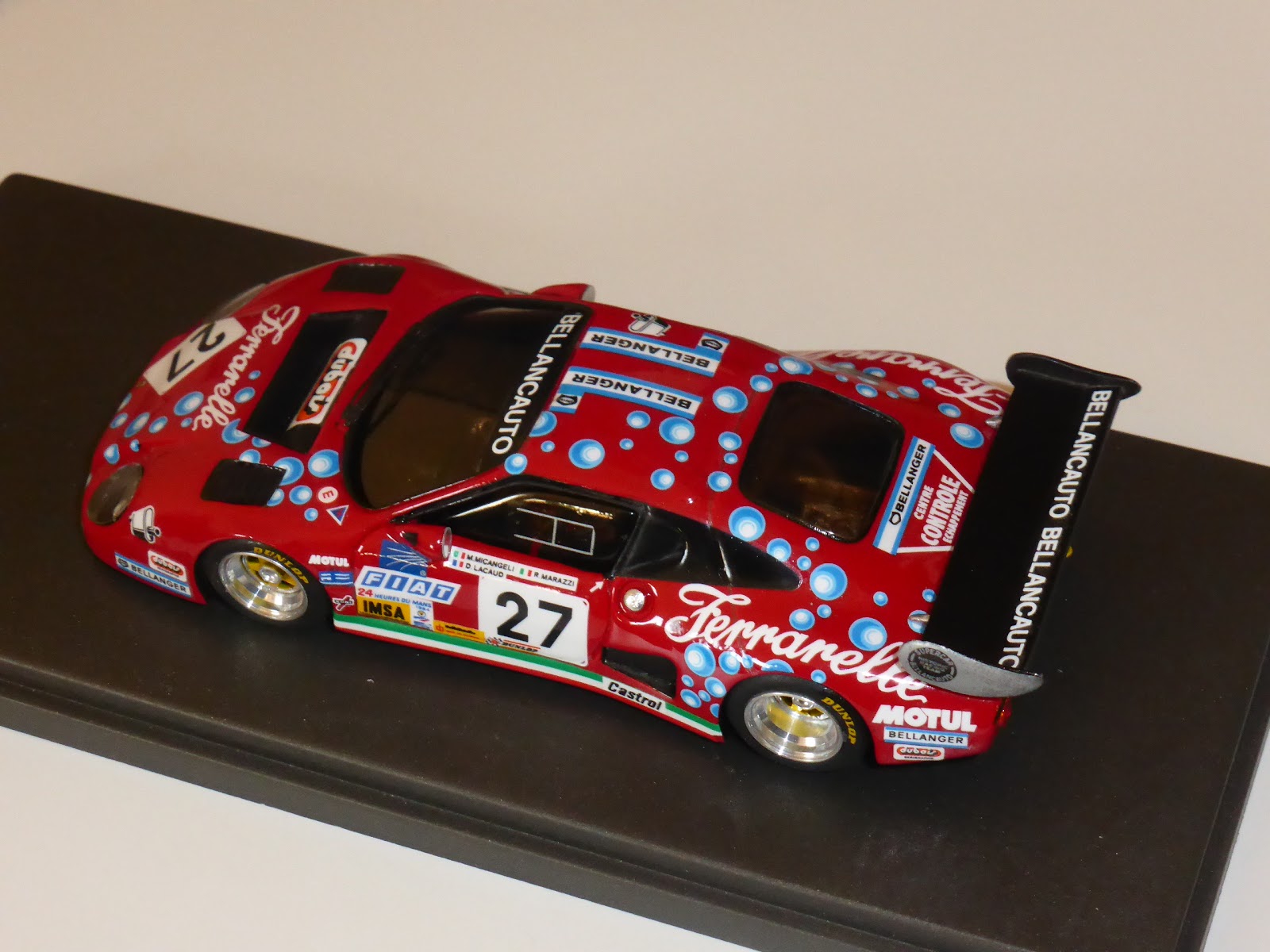 La Ferrari 512BB Bellancauto 1984 di Remember non è un modello nuovo, ma ha conosciuto nel corso degli anni diverse evoluzioni e migliorie. Di recente è stata realizzata una piccolissima serie di montati riproducenti la vettura sponsorizzata Ferrarelle che corse a Le Mans 1984 con Micangeli, Marazzi e Lacaud. Per lungo tempo questa rimase l\’ultima Ferrari ad aver partecipato alla 24 Ore, prima del ritorno in auge delle GT negli anni novanta. Questa serie beneficia di alcuni dettagli supplementari (come i ganci traino anteriori e posteriori), oltre che di una finizione particolarmente curata, che include una mano di trasparente non eccessivamente lucido sulle decals, a uniformare tutta la carrozzeria. Il prezzo è competitivo. Link per la vendita del modello: https://www.geminimodelcars.com/listing/660074264/ferrari-512bb-imsa-gtx-ch35529-scuderia