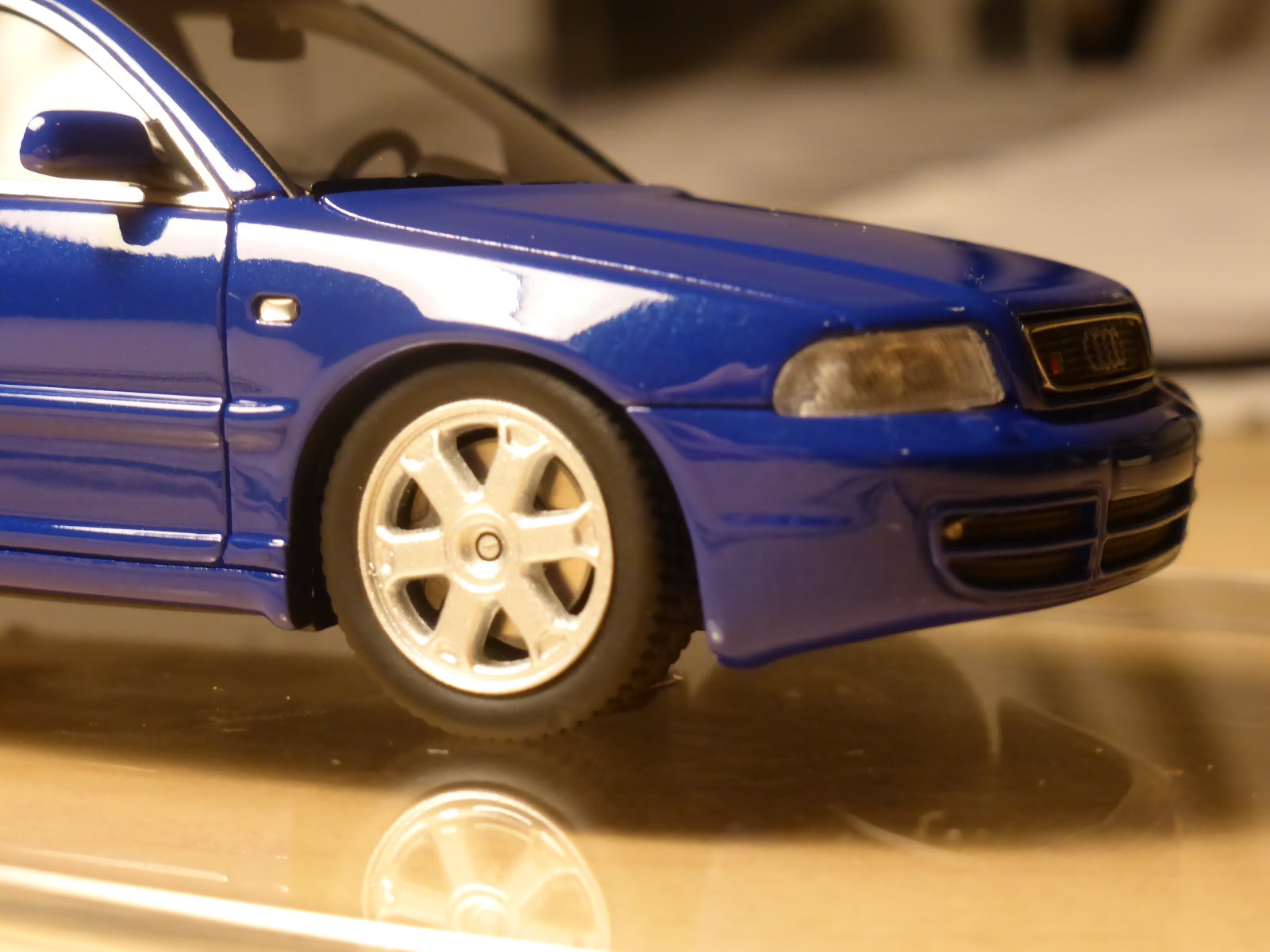 Dal punto di vista qualitativo, le linee sono perfettamente riprodotte; il modello in questione è prodotto con licenza ufficiale Audi. Quello che colpisce maggiormente ad una prima visione è l\’eccellente livello di verniciatura e la precisione del montaggio dei vari particolari, che si pone probabilmente un gradino sopra agli Spark, ai TSM e ai Neo. Anche negli ingrandimenti fotografici il modello non \”soffre\”, e sorprende la quantità di piccoli dettagli che ormai sono la norma, ma raramente li abbiamo visti sistemati con tale precisione. Tutto è pulitissimo e fatto con grande cura; il prezzo competitivo è dato ovviamente dalla possibilità di organizzare direttamente la vendita, come accade con altri marchi, da OttOmobile a GT-Spirit.