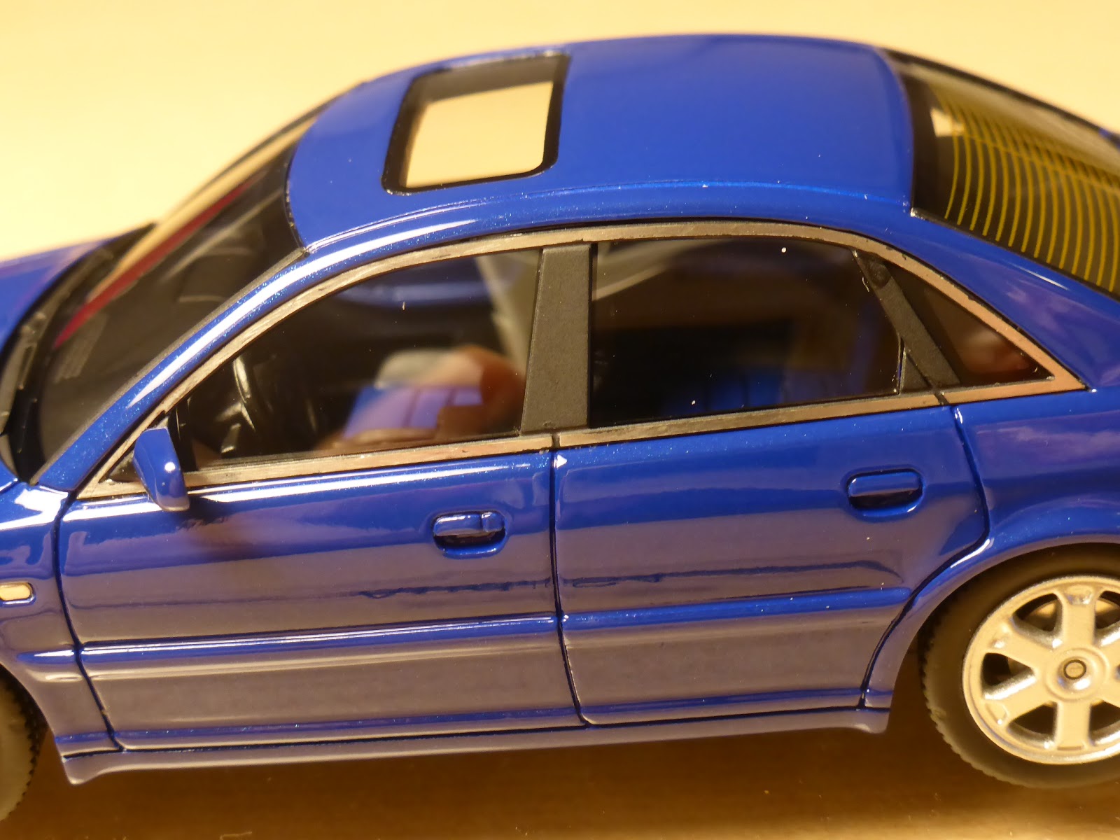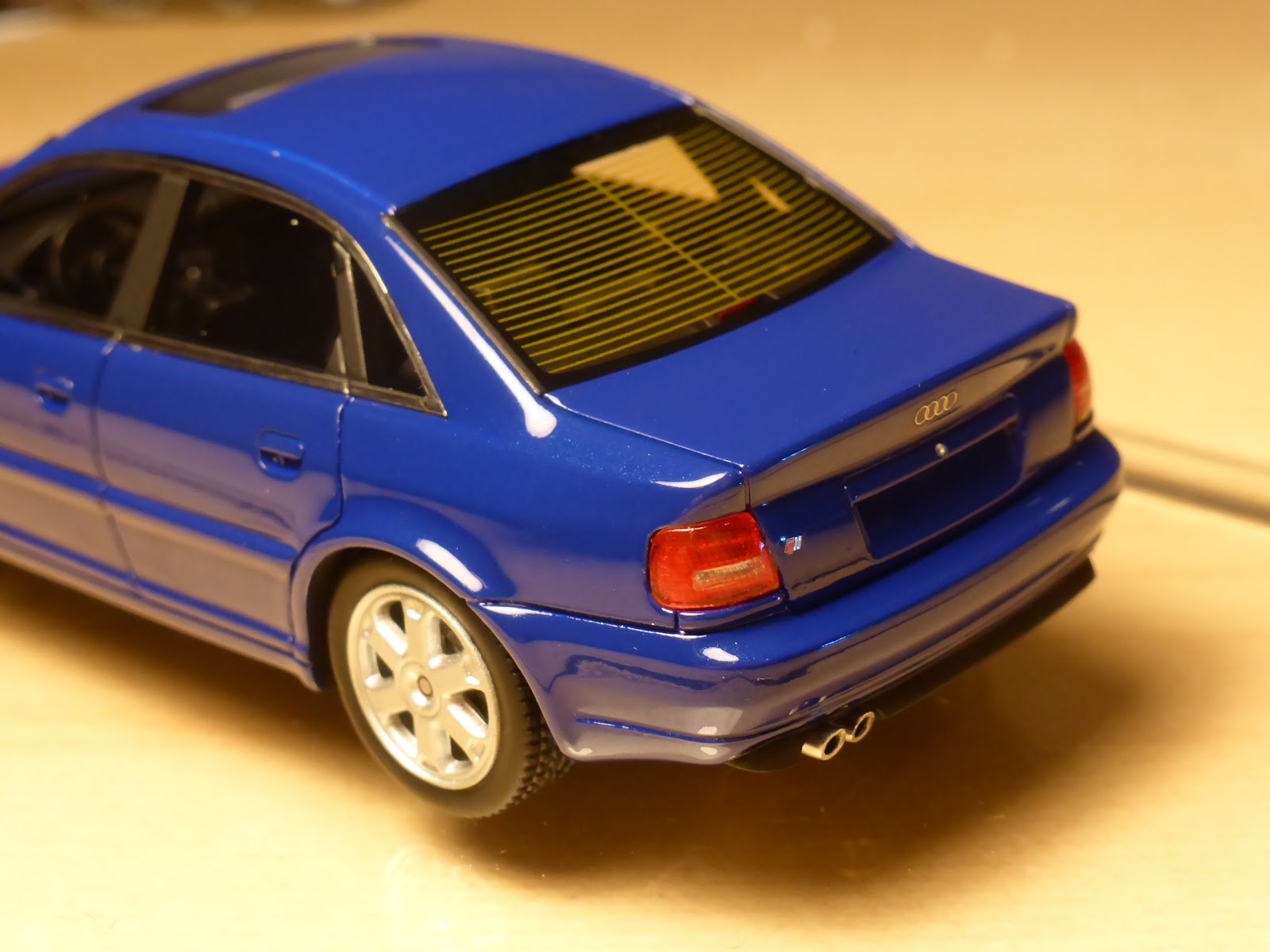 Ogni esemplare è numerato individualmente. L\’Audi S4 è stata prodotta in soli 320 esemplari, e si accompagna ad altri soggetti inediti, accuratamente scelti e individuati in modo da andare a colmare certe lacune che ancora esistono nelle varie scale. Ottimi i cerchi così come gli pneumatici, con la scolpitura e la spalla esatta. Degni di nota anche gli interni e anche il fondino, del tutto visibile grazie alla base trasparente, mostra una buona riproduzione delle principali parti meccaniche e telaistiche.