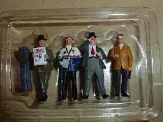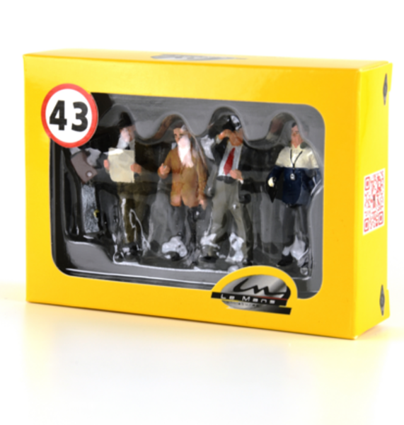 Dopo il primo coffret contenente quattro famosi piloti del passato (di cui potete leggere qui ), Le Mans Miniatures, il fabbricante francese che ha sede alla Madère poco lontano dal circuito delle 24 Ore, propone ora un secondo set dedicato stavolta ad alcuni team manager. Si tratta di figurini in 1:43 in resina dipinti a mano. La confezione contiene un Enzo Ferrari anni 50-60 appoggiato a un muretto e intento a leggere un giornale automobilistico, Norbert Singer anni 80 con la tenuta Porsche-Rothmans, Alfred Neubauer anni cinquanta e John Wyer anni 60-70. La somiglianza somatica con i personaggi reali è soddisfacente.