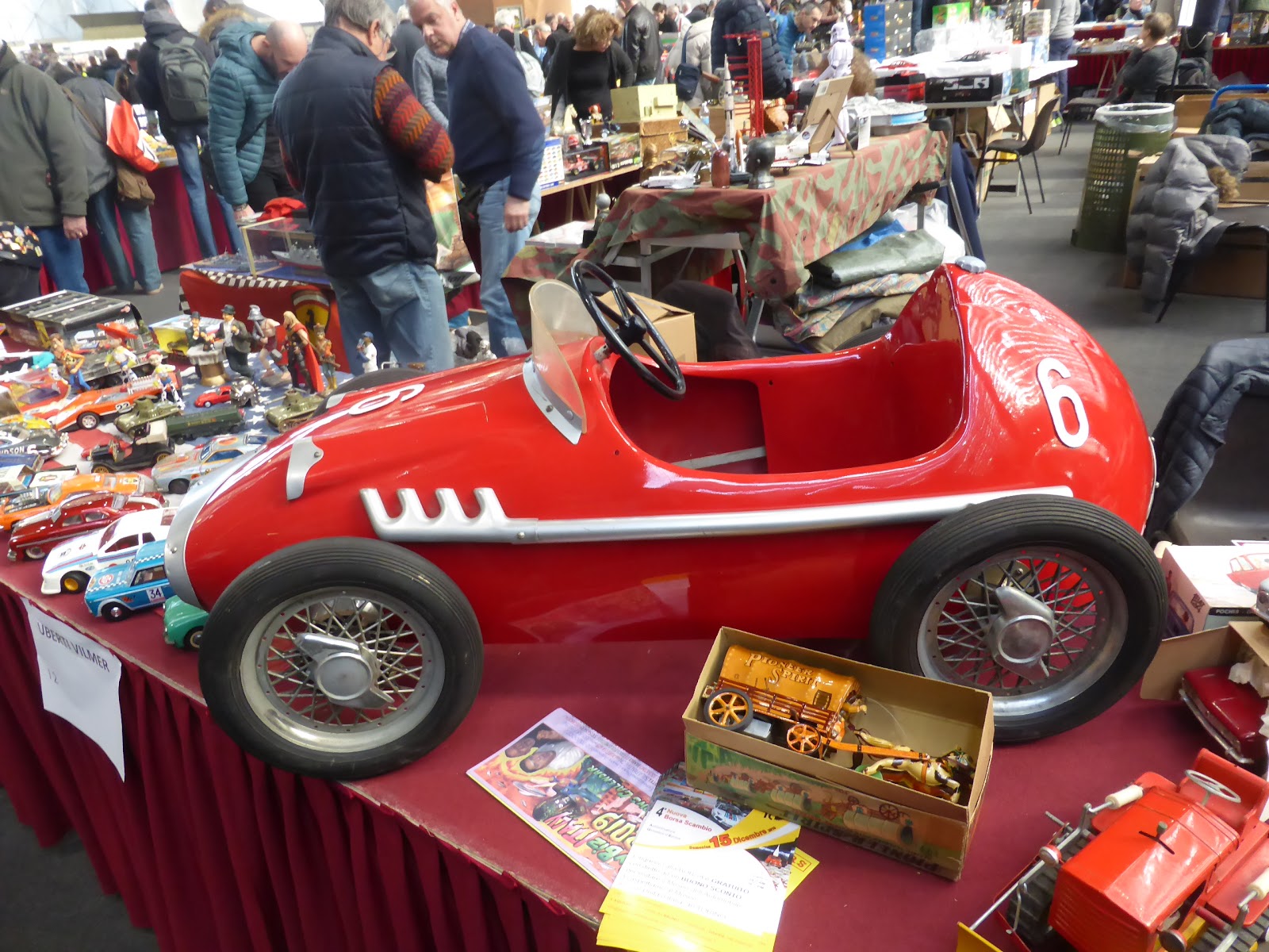 Un\’edizione decisamente brillante, quella della borsa di Novegro di oggi 24 febbraio. Nei padiglioni milanesi erano davvero parecchio le cose di interesse e di valore. Abbinata stavolta alla rassegna sui wargames e a un\’esposizione di creazioni col Lego, la borsa conferma in primis l\’interesse che ruota ancora attorno al giocattolo d\’epoca, soprattutto quello di qualità. Notevoli, ad esempio, due modelli in 1:13 della Pocher (una Fiat 124 grigio chiaro e una 125 rossa), provenienti da un fondo di magazzino cui appartenevano anche altri esemplari già venduti oppure destinati ad apparire presto in altre occasioni. Buona anche, nel settore, la partecipazione estera, con Monsieur Gianni e altri espositori francesi, tanto per fare un esempio. Una vetrina piena di Dinky e Corgi in condizioni eccellenti (anche se non sempre eccezionali) completava una scelta molto vasta. Per il resto, la solita offerta di modelli da edicola, diecast, resincast (con Virus, La Formula 1 del Modellismo eccetera) e la rappresentanza tradizionale degli artigiani, come Tron, Modelling Plus, ABC, Meri Kits.