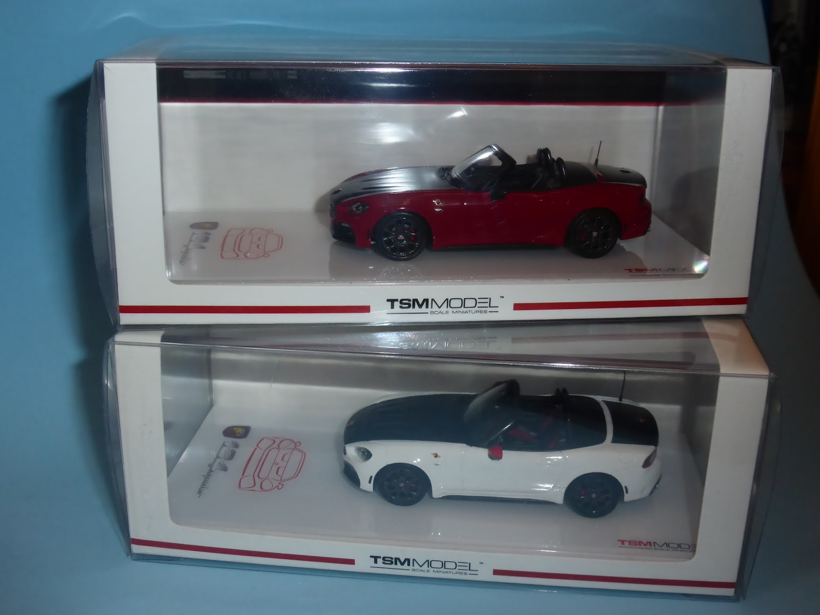 Si è fatta attendere parecchio: annunciata nell\’estate del 2018, l\’Abarth 124 Spider di TSM Model è finalmente disponibile in questi giorni. Sono tre le varianti di colore disponibili: San Marino 1972 black, Costa Brava 1972 red e Turini 1975 white, tutte ovviamente con i cofani in nero opaco. Iniziamo col prezzo: € 89,90 centesimo più, centesimo meno. Per un resincast possono essere parecchi, ma la gamma TSM si aggira su queste cifre anche per ragioni di royalties e di subappalti. Insomma, prendere o lasciare, ma per la qualità proposta, tutto sommato i novanta euro possono essere abbastanza giustificati. BBR, nella gamma fabbricata in Cina, propone la Fiat 124 Spider in varie versioni e colorazioni a prezzi oscillanti fra i 90 e i 119 euro circa, e il livello di finitura non è poi così superiore a quello visto sui TSM. Senza contare che se si desidera la versione Abarth di un certo livello, il TSM diviene una scelta più che giustificata, a meno che non ci si voglia accontentare dell\’Ixo. Il TSM, in ogni caso, non delude: tutto ciò che di meglio si può pretendere da un resincast contemporaneo c\’è, a cominciare da un ottimo livello di verniciature, per continuare con le rifiniture, il livello di montaggio, l\’assetto.