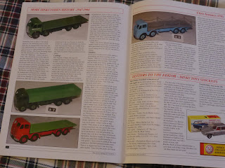 In questo numero 72 del Journal si continua poi a parlare dei Foden, un soggetto praticamente inesauribile: nel contributo di Chris Instance (pp.12-15) si arriva anche a stabilire una cronologia nell\’utilizzazione di diversi tipi di assi ruota, incrociando le evidenze a disposizione con le date dei controlli qualità stampigliate sulle scatole originali. Da segnalare che in un\’appendice a p.20 si parla di un recente ritrovamento di quella che dovrebbe essere una delle versioni più rare del Foden con pianale di tipo 2, tutto giallo con ruote verdi. Il modello era già conosciuto, tant\’è vero che appare anche nella celebre guida Ramsay\’s; il pezzo ritrovato non ha scatola e denuncia senz\’altro la sua età, ma le condizioni restano tutto sommato accettabili.