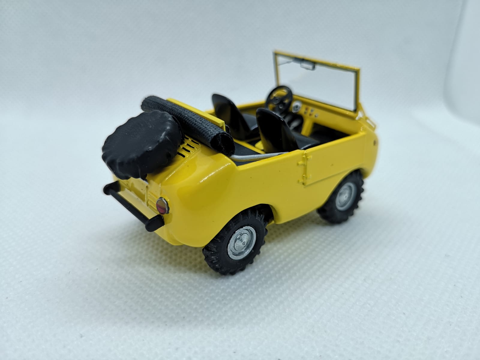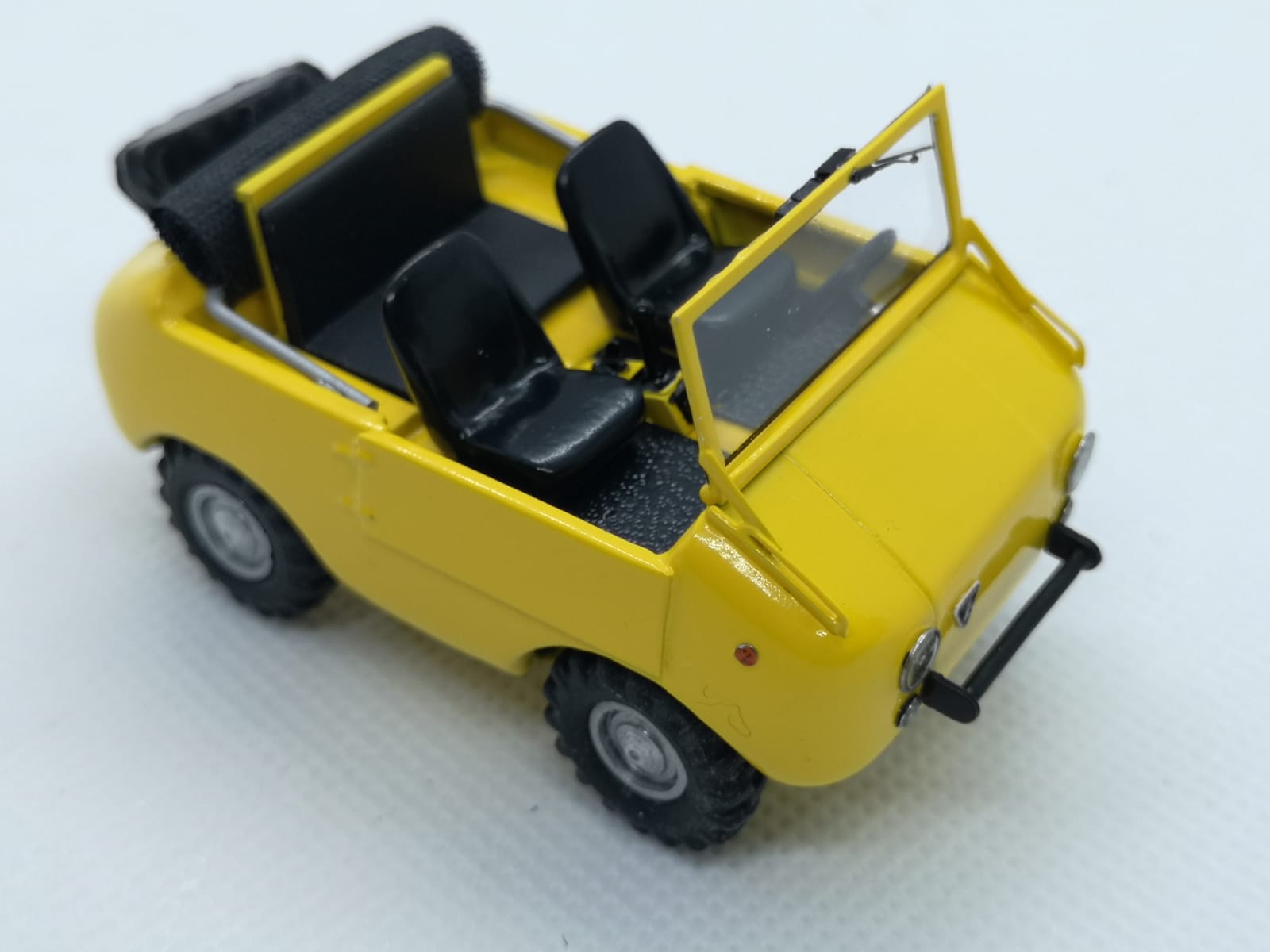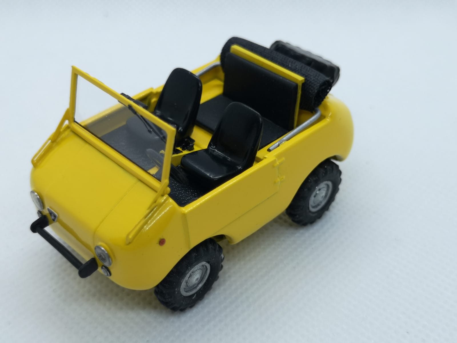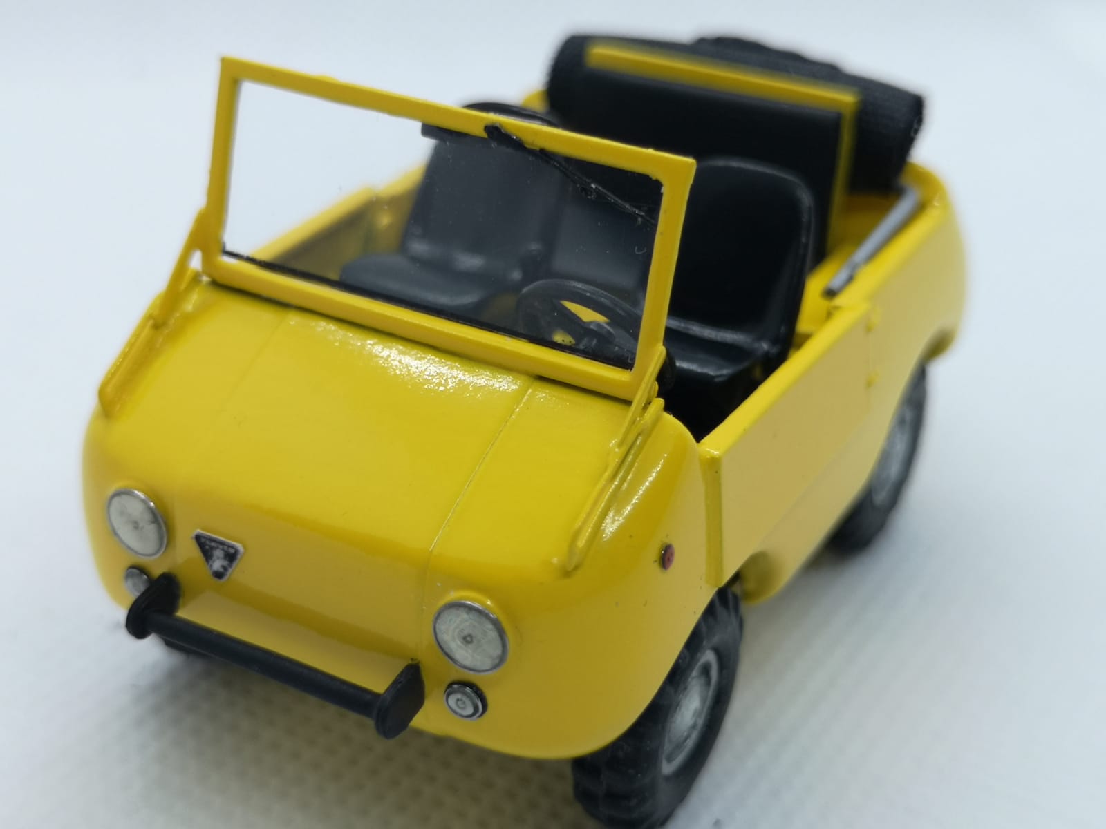 Ecco quindi che tutto è stato rivisto e migliorato: dal colore conforme all\’originale agli interni, dal parabrezza ai tergi, dal retrovisore alla riproduzione della ruota di scorta con la sua copertura (l\’originale era andato perduto, ragion per cui De Simone ha simulato la presenza della ruota stessa con la silhouette di una custodia nera). Per il momento manca la scritta Ranger che verrà stampata in decal. Il risultato generale è estremamente gradevole, a conferma che elaborazioni di questo tipo possono riservare molte soddisfazioni con un costo minimo e che gli uffici tecnici delle case di un tempo erano in grado di ottenere modelli dalle dimensioni corrette nonostante non potessero contare su tecnologie digitali e di tutte quelle facilitazioni che i produttori di oggi hanno sotto mano.