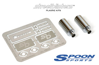 Streetblisters è un nuovo produttore spagnolo che ha al suo attivo una gamma di cerchi, gomme e accessori fotoincisi e in acciaio cromato per kit in plastica in scala 1:24. In questo settore esiste un\’offerta molto varia e completa, ma Streetblisters ha cercato di colmare alcune lacune che ancora restavano. Avendo acquisito la licenza ufficiale Spoon Sports, il marchio, che ha sede a Barcellona, propone alcuni terminali di scarico in acciaio cromato e cerchi che riproducono i prodotti Spoon. In aggiunta è disponibile un set di gomme scolpite Toyo per ruote da 16 pollici, un set fotoinciso per la Honda Civic EK di Fujimi e tutta una serie di altri cerchi particolarmente adatti per vetture sportive da turismo.
