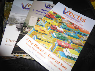 | Un gruppo di cataloghi cartacei pubblicati da Vectis. |