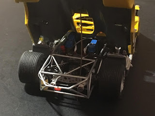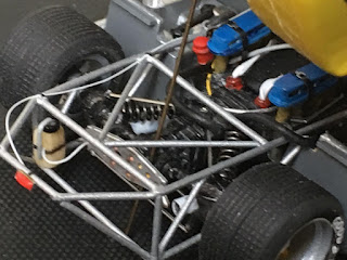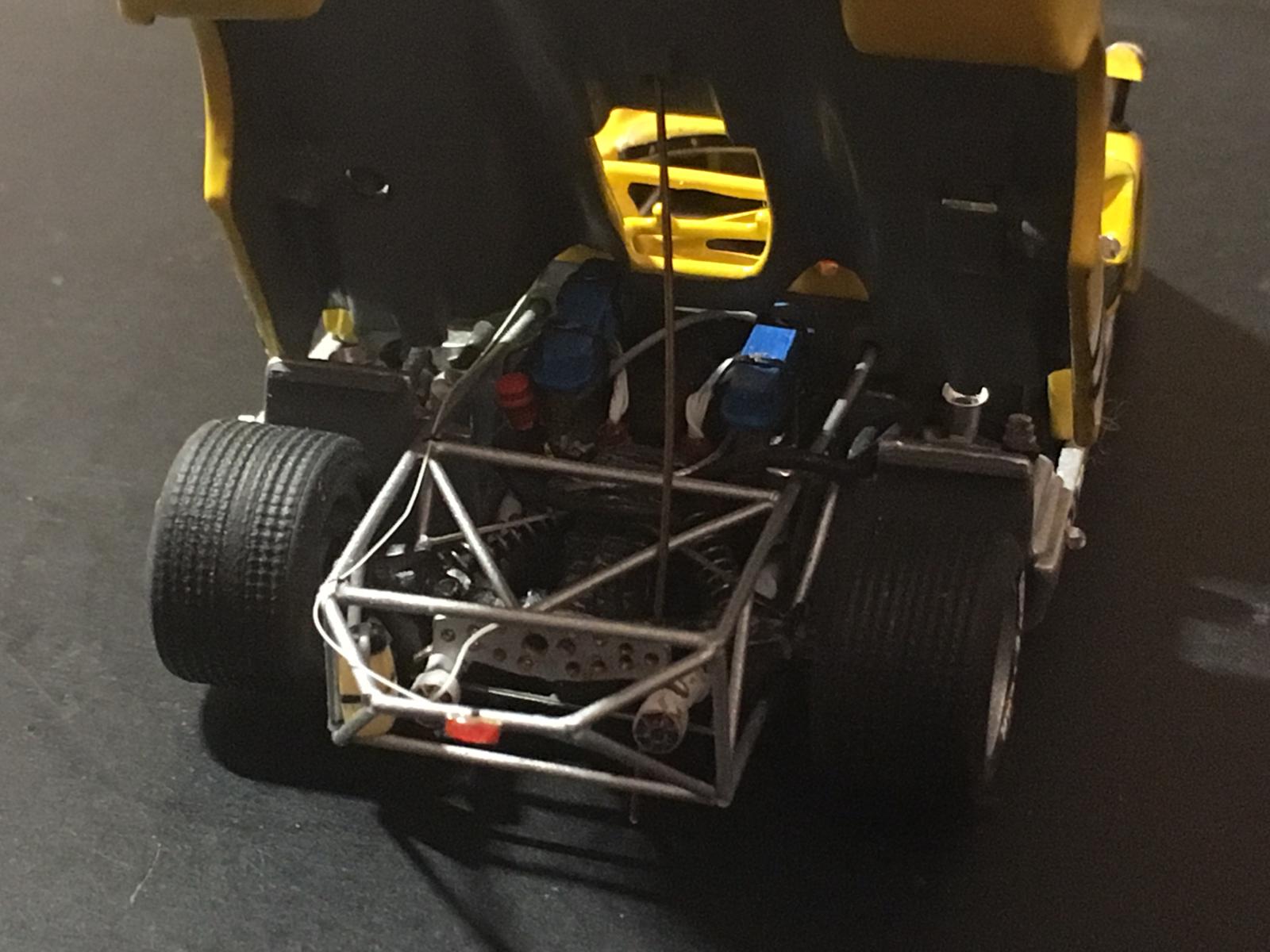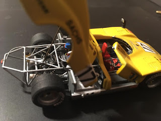 Martini ama molto la combinazione di elementi diversi (plasticard, alluminio, resina, ottone, metallo bianco, eccetera) che a suo parere contribuiscono a rendere più realistico un modello, aggiungendo complessità all\’insieme, che deve comunque restare armonico ed equilibrato. Il risultato ci sembra in linea (anzi, superiore) alle ultime elaborazioni di Martini, in particolare la Porsche 917PA Gesipa su base Politoys di cui il blog si era occupato alcune settimane fa.