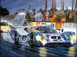 La Formula 1, la Formula E, le auto sportive moderne sono noiose? Anzi, mortalmente noiose e politicamente troppo corrette per voi che siete cresciuti guardando Takaya Todoroki su Telelibera Firenze? Vi capisco. Anch\’io provengo da lì. Rimpiango la Brabham BT49 e la Williams FW07. Ok, fin qui ci siamo. Ma questo corto circuito di mancate emozioni genera mostri. Questi mostri si chiamano le ipercorse. Cosa sono le ipercorse? Sono le gare del passato rivisitate con le suggestioni della nostalgia, anzi, del disadattamento al presente, di per sé spiegabilissimo. Ma se il livello di esagerazione ha un limite, le ipercorse lo oltrepassano. Con l\’avvento di Internet e dei social le ipercorse si sono radicate nell\’immaginario degli appassionati, assumendo connotati mitici alla stessa stregua delle antiche agiografie. Steve McQueen, Le Mans 1970, la Porsche 917 e la Ferrari 512S, il Nurburgring e Spa sono fra i temi preferiti dell\’iconografia delle ipercorse. Le ipercorse, lo avrete già capito, non sono mai esistite. Esse albergano nella mente di quelli che vanno a Le Mans vestiti da Porsche 917 o col giubbottino di McQueen, sperando di ritrovare nelle asettiche LMP di oggi emozioni probabilmente neanche mai esistite. Si riconoscono fra loro: io ho la T-Shirt rosa con i tagli dei maiale, tu hai quella viola con i ghirigori verdi e il numero 3, lui quella da benzinaio, celeste con la strisciona arancione. Roba che se le usi per andare in giro tutti i giorni ti bloccano subito e ti rinchiudono per un TSO (che non significa in questo caso Thierry Sabine Organisation). Nelle ipercorse non piove, diluvia. C\’è tanta di quell\’acqua che la 24 Ore di Le Mans 1970 sembra svolgersi in Piazza Santa Croce durante l\’alluvione di Firenze, col Cristo del Cimabue che fa da starter. I bardi di queste vulgate drammatizzate sono quegli pseudo-pittori di croste che vedi a Rétromobile nel cosiddetto padiglione degli artisti o nel villaggio di Le Mans. Non faccio nomi, tanto sono tutti uguali.