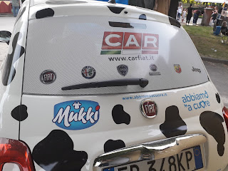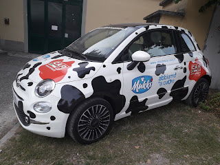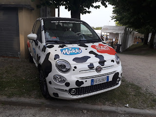 Fiera Agricola Mugellana (FAM) a Borgo San Lorenzo (Firenze), 8 giugno 2019: esempio di come si possa trovare sempre qualcosa di pubblicabile in un blog dedicato ai motori, oltre ovviamente i trattori e le macchine agricole che non ci ispirano più di tanto. La FAM edizione 2019 è una manifestazione davvero simpatica, che mette in evidenza quanto di meglio possono dare gli allevamenti e i vari produttori agroalimentari della zona (e non solo). Ma volendo per forza parlare di auto, proponiamo una simpatica Fiat 500 sponsorizzata Mukki Latte, che potrebbe costituire un soggetto interessante, a patto di ricavare una 500 della seconda generazione dalle basi esistenti (i fiattari potranno confermare o meno l\’esistenza della II Serie in 1:43 o in altre scale; a me pare che ancora non l\’abbia fatto nessuno).