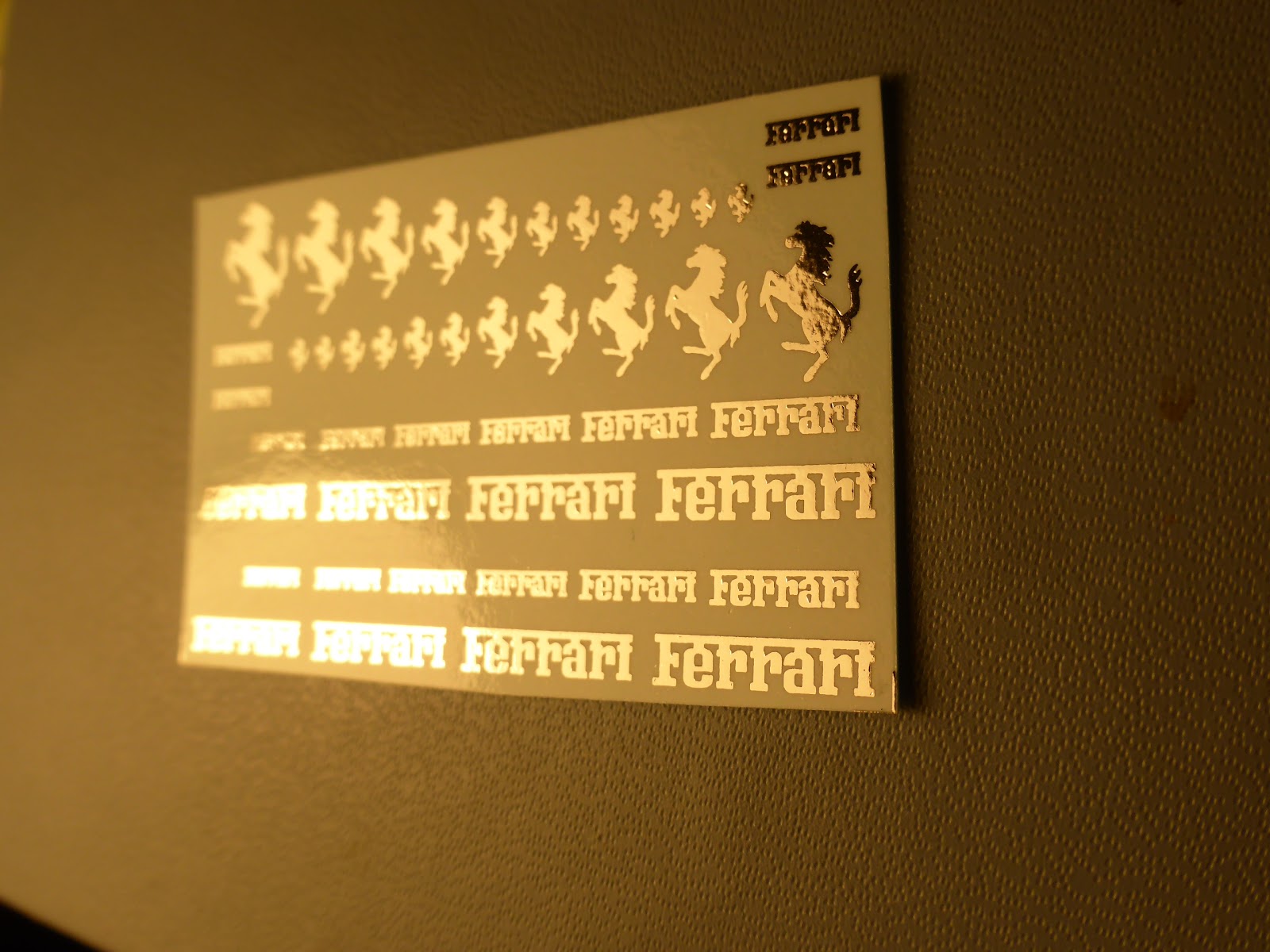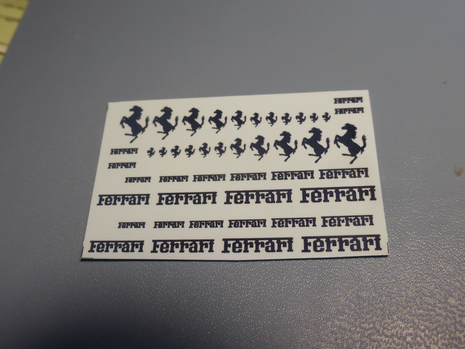 Con la referenza ED-012 è invece disponibile un foglietto dedicato ai modelli Ferrari, con scritte e simboli in vari formati, adatto a varie scale (1:43, 1:24, 1:20, 1:18, 1:12).