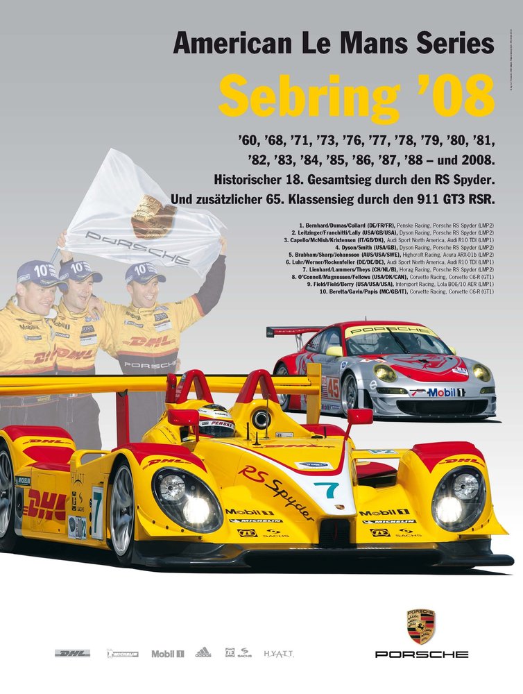Quando mi chiedono quale delle tante gare alle quali ho assistito in tutta la mia carriera di giornalista mi abbia colpito di più, rispondo \”la 12 Ore di Sebring 2008\”. Per tanti motivi, ma soprattutto per il ritorno alla vittoria assoluta di una Porsche dopo vent\’anni (e Roger Penske arrivò trionfante in sala stampa a distribuire un comunicato che celebrava il successo). Il 15 marzo 2008, la RS Spyder di Bernhard/Dumas/Collard batté la concorrenza di Audi e Peugeot, pur essendo iscritta in classe LMP2. Certo, i regolamenti americani concedevano alle LMP2 dei vantaggi che in Europa non erano pensabili, ma fu comunque una corsa magnifica, caratterizzata anche dall\’appassionante duello con le Acura. Ci furono squalifiche a fine gara, ma il primo posto della RS Spyder del team Penske non fu il frutto delle decisioni dei commissari: la Porsche numero 7 aveva tagliato il traguardo in testa, ottenendo una vittoria destinata a restare negli annali dell\’automobilismo. L\’anno precedente, la gara della Florida si era conclusa col pirotecnico duello fra la Ferrari di Jaime Melo e la Porsche di Joerg Bergmeister per la categoria GT e l\’edizione 2008 non fu meno spettacolare, anzi. Con Audi e Peugeot alle prese con fin troppi imprevisti, la gara si giocò sul filo dei secondi, con le RS Spyder ufficiali, quelle private e le Acura grandi protagoniste. Ancora una volta, Sebring si confermava uno dei banchi prova più severi per una vettura endurance. Quell\’anno collaboravo anche per Autosprint e mi fu affidato il servizio per il numero che sarebbe uscito il martedì. Il fuso orario, in quel caso, giocava a mio favore, e potetti seguire senza problemi anche le fasi di premiazione e di conclusione della lunga settimana. Viaggiavo all\’epoca con Udo Klinkel e Jan Hettler, due fotografi tedeschi che stavano tra l\’altro lavorando alla monumentale storia della 1000km del Nurburgring, uscita alcuni anni dopo.