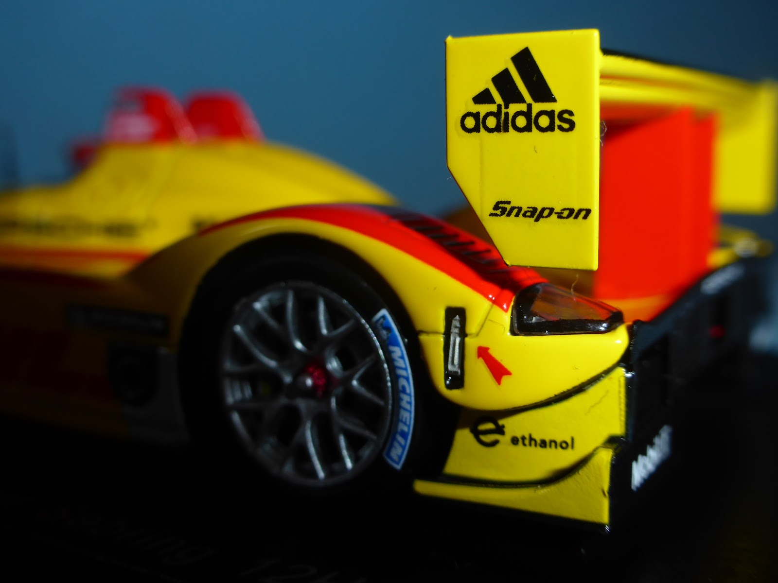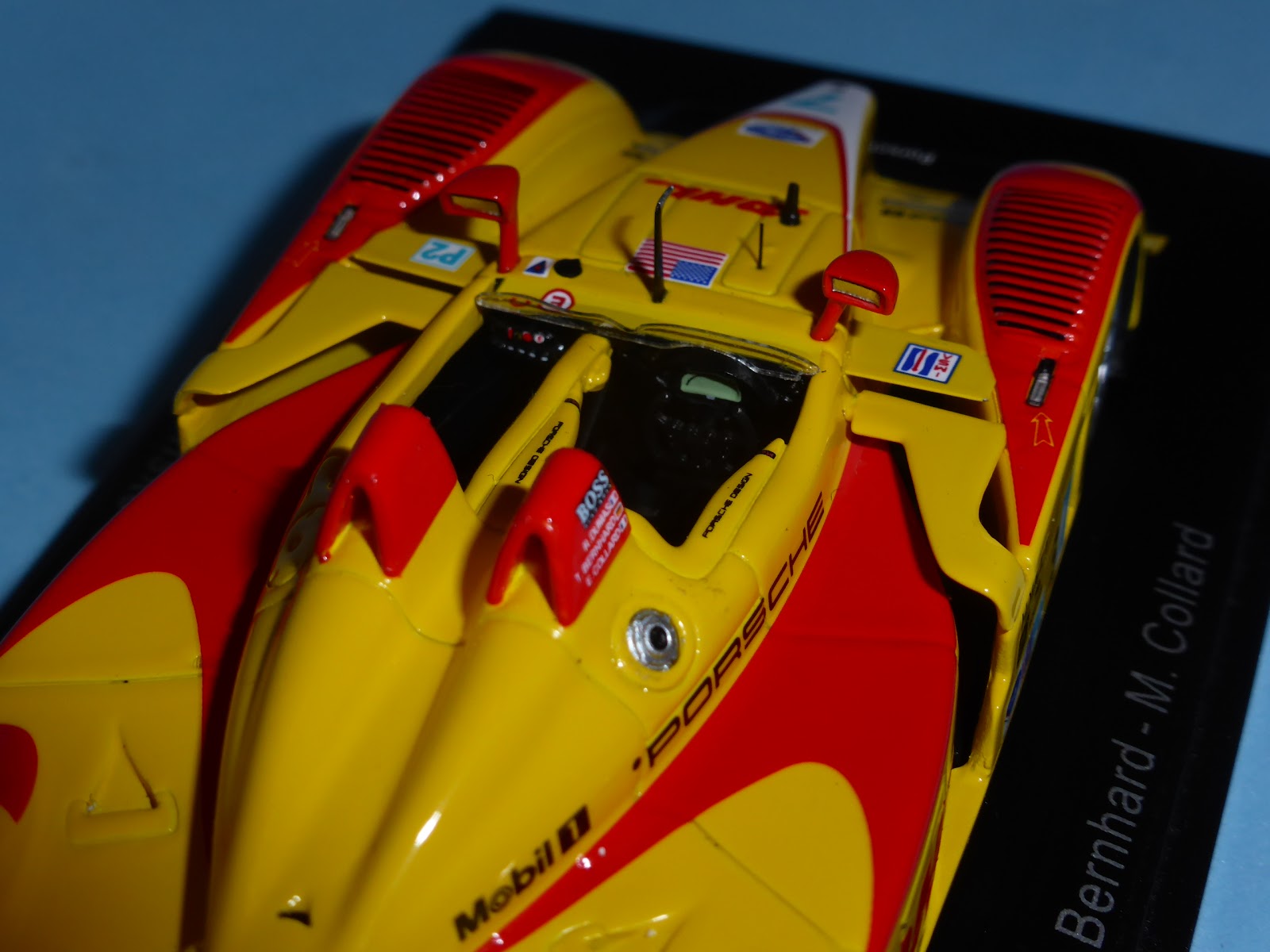 Chi ha il modello Minichamps a casa credo possa rendersi conto dei progressi compiuti da Spark in questi ultimi 10-15 anni: non c\’è un particolare fuori posto e ormai anche il controllo qualità sembra aver fatto dei passi avanti. Difficile trovare l\’esemplare \”bacato\”, cosa che accade (accadeva?) molto più frequentemente sia con i Minichamps sia con gli Spark del passato (diciamo fino a sei-sette anni fa). Colpiscono tante raffinatezze come l\’imitazione del carbonio sullo splitter anteriore: delle righine finissime rendono il tutto estremamente realistico. Ottimo l\’incollaggio delle varie appendici aerodinamiche sulla carrozzeria. La plastica dello spoiler posteriore, purtroppo, si inarca leggermente verso l\’alto, con un effetto non ottimale, ma è questione di poco. Del resto anche sui modelli speciali montati, spesso gli spoiler posteriori tendono a piegarsi o ad inarcarsi inopinatamente: ricordo una serie di kit Marsh Models della Jaguar Gruppo C che erano un\’autentica tragedia. Su questi modelli Spark, almeno, le cose incollate resteranno così negli anni senza dare adito a brutte sorprese. Sia detto per inciso, dal punto di vista della tenuta nel tempo, gli Spark sembrano solidi, a parte alcuni casi di reazione fra la gomma e la vernice del cerchio, osservati su vari modelli (Porsche 908/3, Porsche 917 Can-Am, alcune 956/962C, eccetera).