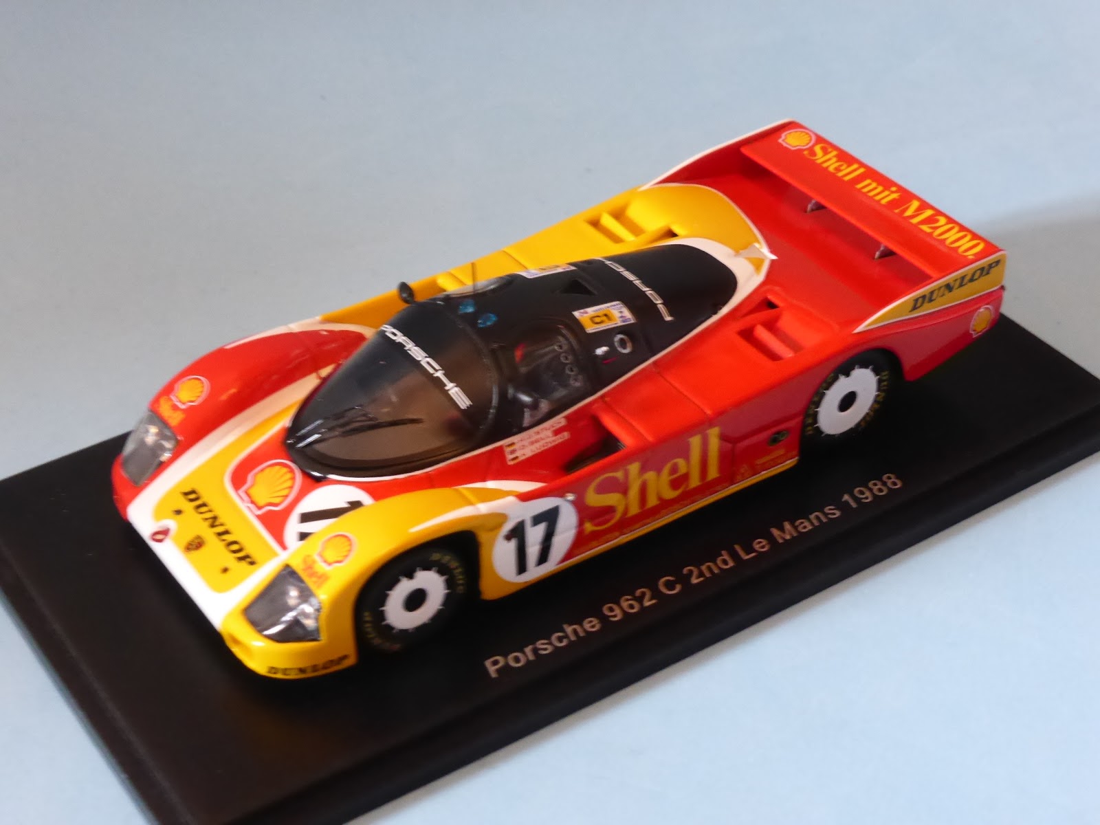 Le tre Porsche 962C ufficiali di Le Mans 1988 erano state prodotte da Spark ormai diversi anni fa. Andate rapidamente esaurite, erano fra quei modelli di questa ditta che su eBay erano contesi a suon di centinaia di euro. Il livello raggiunto non era quello delle Porsche 917K Gulf di Le Mans 1970, ma in qualche caso estremo ci andavano vicino. Merito della lungimiranza di alcuni commercianti e della dabbenaggine di quei collezionisti che forse non avevano previsto che, trattandosi di serie non limitate e non numerate, Spark avrebbe potuto rifarle in qualsiasi momento. Ed è ciò che è successo, prima con le vincitrici di Le Mans, poi con altri modelli per i quali giustamente la casa di Ripert ha intravisto una possibile forte richiesta di mercato. Ecco quindi uscita di nuovo una delle tre 962C di Le Mans 1988, a mio avviso la più bella edizione degli anni ottanta della 24 Ore (se non ricordate come si svolse la gara e come andò a finire, andate a ricercarvi qualche cronaca, possibilmente dell\’epoca).