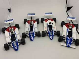 | Le quattro versioni della Fittipaldi F9 di MA.GA. Models: da sinistra: Hockenheim, Zeltweg, Digione e Las Vegas |
