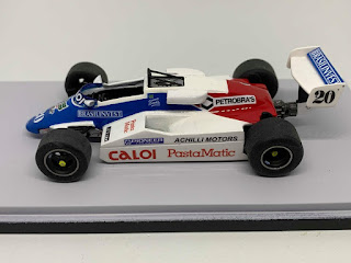 Del marchio MA.GA. Models e del suo primo modello, la Fittipaldi F9 Formula 1 1982, ci siamo occupati nel blog nel gennaio di quest\’anno (vedi link: http://grandiepiccoleauto.blogspot.com/2019/01/un-nuovo-artigiano-maga-e-la-fittipaldi.html). A quell\’epoca, il produttore modenese aveva esordito con la versione del Gran Premio d\’Austria a Zeltweg, cui nel corso dei mesi sono seguite altre tre varianti. In questo modo, MA.GA. Models ha riprodotto l\’intero sviluppo della Fittipaldi F9, che è una specie di rompicapo, visto che la macchina, a corto di competitività, cambiava di gran premio in gran premio, senza peraltro risultati apprezzabili. Al termine della stagione, come sapete, la Fittipaldi Automotive lasciò la Formula 1, dopo sette anni quantomeno travagliati.