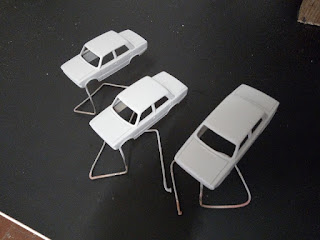 | Le scocche già preparate, pronte per la verniciatura dopo la mano di fondo. |