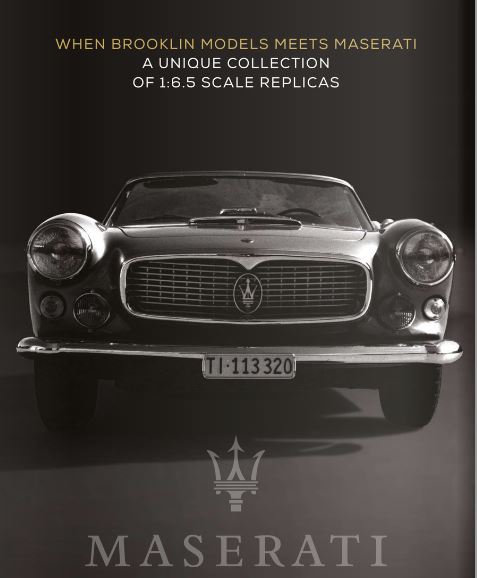 Brooklin, lo storico marchio britannico di modelli in metallo bianco, ha perfezionato una collaborazione ufficiale con Maserati per realizzare alcune riproduzioni piuttosto particolari. E\’ prevista una serie di riproduzioni in scala 1:6,5 di celebri volanti delle vetture del Tridente, tutti in metallo bianco. Queste le prime referenze: A6G Spyder 1954-1957, Mistral 1964-1971, 3500GT Coupé 1957-1960. Verranno riprodotti anche alcuni yacht da competizione che portano il marchio Maserati, come il VOR70 e il Multi70. L\’anno prossimo è in ponte anche una collaborazione con Alfa Romeo (o con ciò che ne resta), che celebrerà il centodecimo anno dalla fondazione. Ricordiamo che Brooklin ha già in essere una produzione di vetture papali, ufficialmente autorizzata dalle Edizioni dei Musei vaticani.