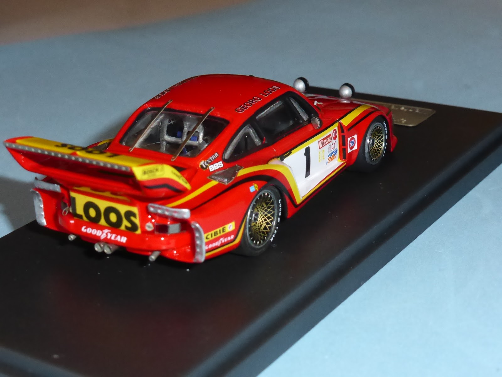 Tutta la decorazione è stata realizzata a mano con dime e con altre decals reperite da varie fonti. Il risultato è un modello molto particolare, perché rappresenta una versione \”americana\” di un\’auto che normalmente correva in Europa. Specifici alla versione Daytona i due fari supplementari e la particolare protezione alla griglia del radiatore. Un modello che è piaciuto ai fan di Bob Wollek e agli appassionati di endurance in genere.