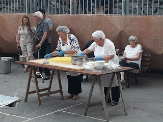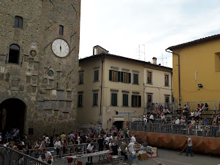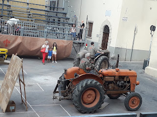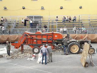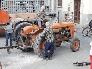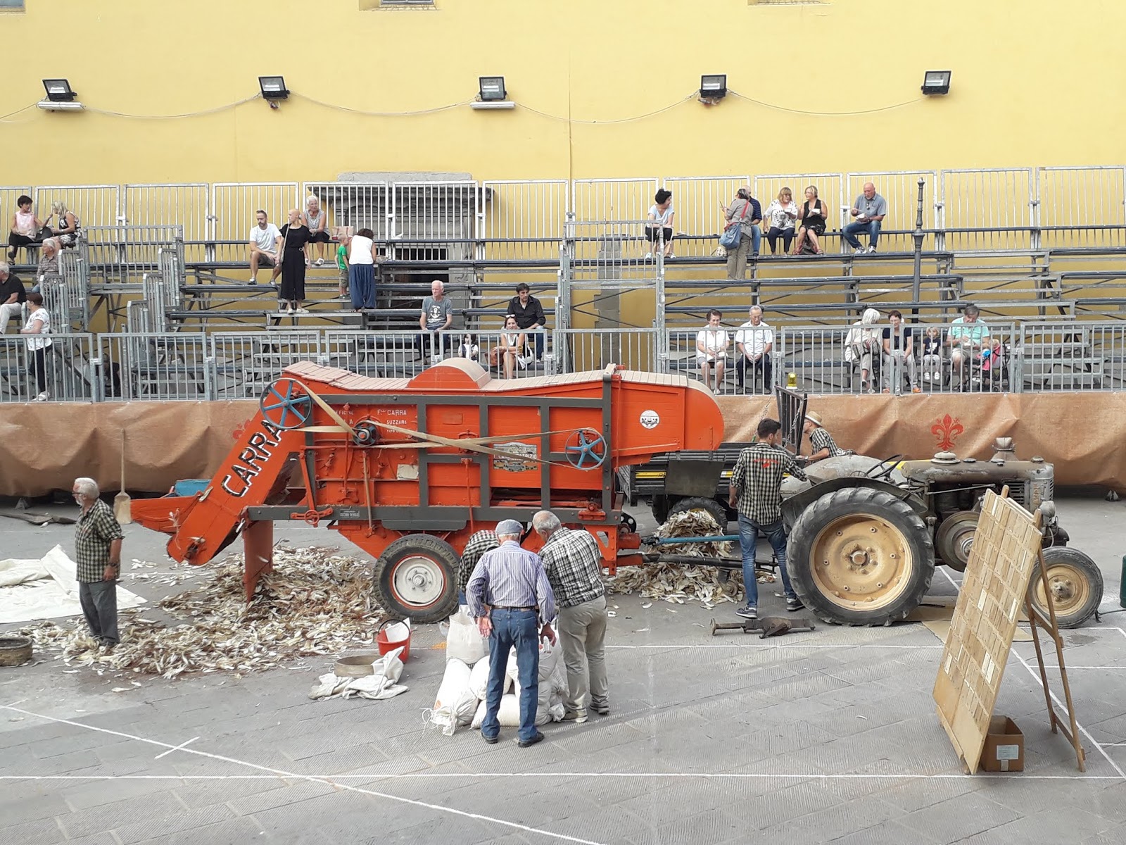 Oggi si chiudono le celebrazioni del Diotto di Scarperia, iniziate lo scorso 18 agosto e che hanno avuto il loro culmine con le giornate rinascimentali il 31 agosto-1 settembre e con la finale del palio, che si è giocata domenica 8 settembre. Oggi pomeriggio, nella piazza dei Vicari di Scarperia, si è svolta come di costume ormai da oltre vent\’anni la rievocazione della \”battitura del formentone\” (spiga del granturco). Ogni volta è l\’occasione per ammirare macchine agricole e trattori d\’epoca perfettamente funzionanti. La sfogliatura e la sgranatura delle spighe viene eseguita con un\’apposita macchina, che collegata ad un trattore trasferisce l\’adeguata potenza per la lavorazione. Si procede gettando dentro la tramoggia, con un canestro, le spighe del granturco complete di \”cartocci\”. Il macchinario separa la granella dai cartocci e dai torsi in tre mucchi separati. Dai due lati escono il formentone e i torsi, mentre i cartocci vengono espulsi dal retro della macchina.