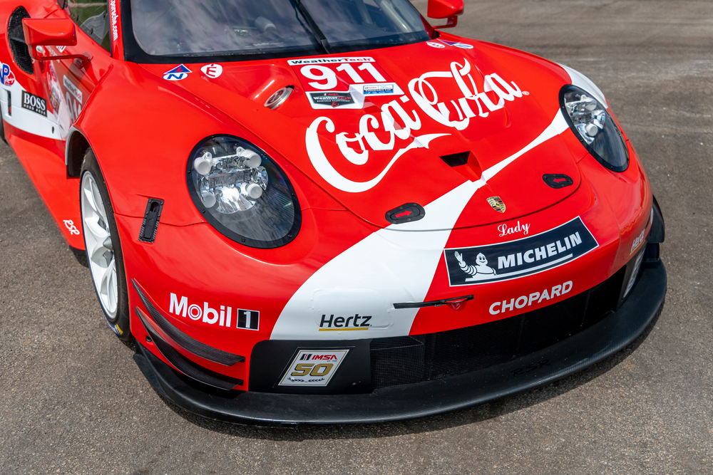 Il 2019 ha segnato il cinquantesimo anniversario dell\’IMSA e la Petit Le Mans a Road Atlanta, in chiusura di stagione, è uno degli appuntamenti più attesi del calendario americano. Per concludere degnamente i festeggiamenti del mezzo secolo dell\’IMSA, la Porsche ha deciso di celebrare un\’altra livrea storica, scegliendo stavolta i colori Coca Cola che per tanti anni hanno contraddistinto le vetture del team di Bob Akin.