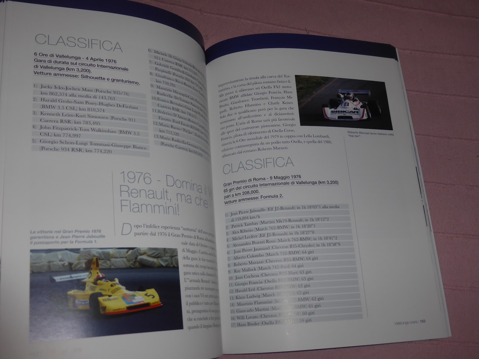 Ma il Gran Premio di Roma era l\’elite: ci corse, a Campagnano, anche la Formula 1, ma molti ricordano con nostalgia le giornate della Formula 2 anni settanta-inizi ottanta, quelli della Formula 3000 e le 6 Ore valide per il Mondiale Marche. Il volume si chiude, inevitabilmente, con l\’E-prix corso a Roma (a proposito, non manca neanche un capitolo che spiega come nacque e come non si disputò mai il Gran Premio di F.1 che avrebbe dovuto corrersi all\’EUR nel 1985). Dalla metà degli anni novanta a oggi sono parecchi i volumi sull\’automobilismo laziale; uno dei precursori di queste ricerche fu l\’ingegner Enzo Altorio, che nel 1994 pubblicò un\’esauriente storia dei Giannini. Molto però è dovuto alle straordinarie capacità di ricerca di Franco Carmignani: possiamo citare la storia di Patriarca, uscita per i tipi dell\’ASI alla fine del 2015 o il grande volume su Vallelunga, uscito nel dicembre 2017 in occasione dei 65 anni dell\’autodromo. Già la ricerca sulla storia di Vallelunga era iniziata nei primissimi anni duemila, tra l\’altro in concomitanza con i ritrovamenti archeologici all\’interno della zona dell\’autodromo. Insomma, anche per quanto riguarda Roma e dintorni, la storiografia automobilistica italiana sta recuperando l\’enorme svantaggio accumulato durante anni in cui si pensava che condurre ricerche sulle realtà sportive locali – e ce ne sono di ricchissime – non rivestisse un grande interesse. Gli inglesi insegnano e la lezione forse è stata definitivamente recepita.