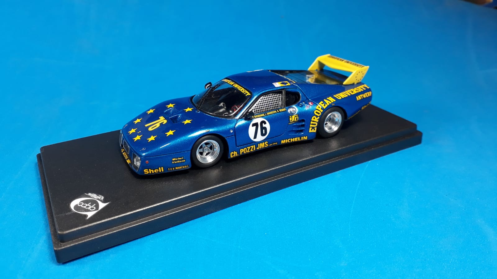 Le tre Ferrari 512BB-LM iscritte alla 24 Ore di Le Mans 1980 da Charles Pozzi-JMS sono celebri e non certo inedite nel modellismo. Nondimeno, la livrea giallo-blu European University resta una delle più amate e continua a \”tirare\” bene. Remember ha appena prodotto una riedizione delle tre vetture che, ricordiamo, differiscono fra loro per alcuni dettagli, il più importante dei quali è quello legato alla differenza di carrozzeria (tipo 1979) della vettura numero 75 rispetto alle altre due (tipo 1980).