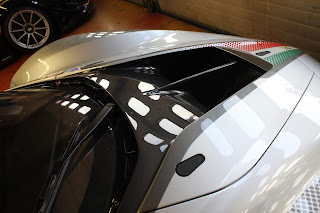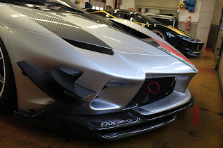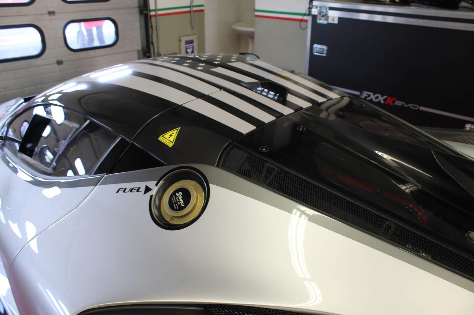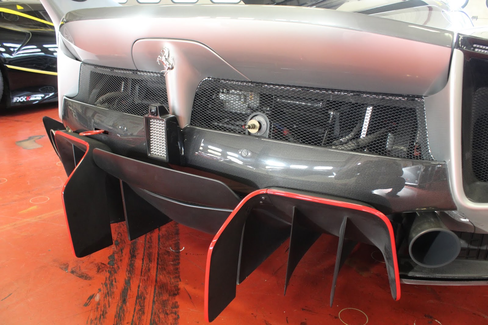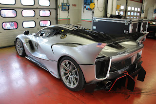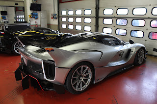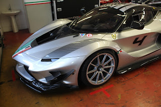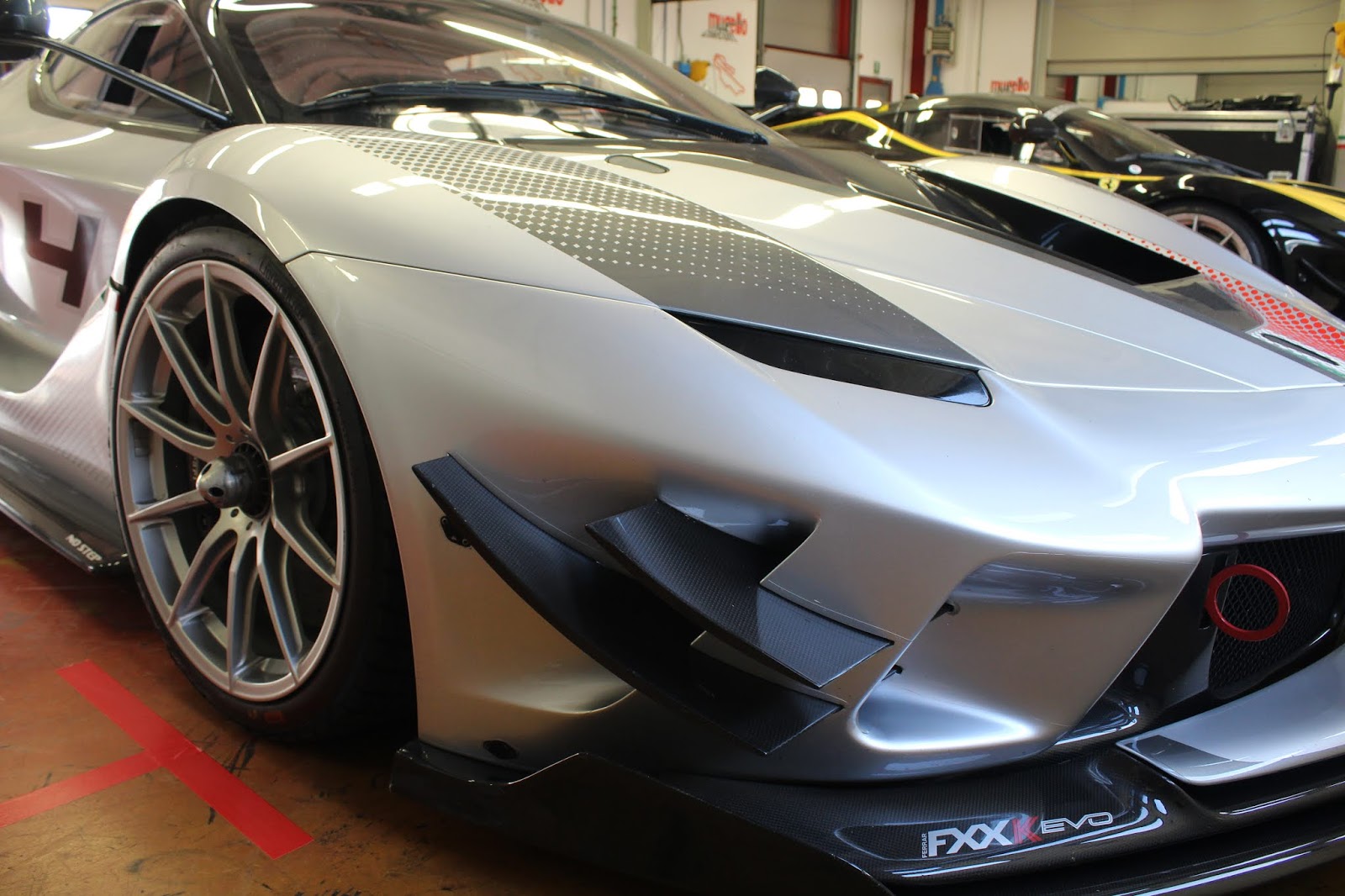 La versione Evo della FXX-K fu presentata nell\’ottobre 2017; invariato il propulsore rispetto alla vettura originaria, la vettura può contare su diverse migliorie aerodinamiche e su una riduzione del peso. La modifica più evidente è la presenza della nuova ala posteriore fissa, a profilo biplano, con una pinna che funge da deriva verticale e da supporto a tre generatori di vortici a delta. Aperto anche il paraurti posteriore e nuovo disegno per l\’estrattore, mentre sull\’anteriore i paraurti ricevono una nuova configurazione. Rivisto anche l\’impianto frenante. Pubblichiamo la gallery di una delle vetture presenti alle Finali mondiali Ferrari al Mugello (esemplare telaio #239043)