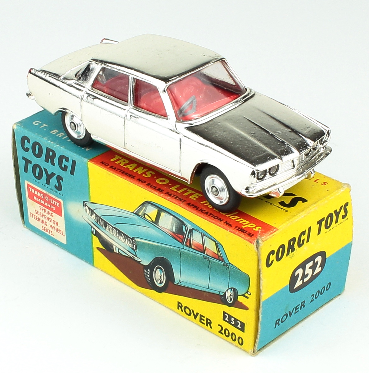 Nelle scorse settimane ne sono stati messi in vendita tre: una Rover 2000 (catalogo 252), una Land Rover (438) e la Batmobile (267), quest\’ultima con la variante dei pneumatici neri con anello anziché col battistrada. Tra l\’altro la Rover non è estranea ad altri trattamenti… brillanti. Si conosce una rara versione cromata, prodotta in serie limitata nel 1963 (foto sotto).