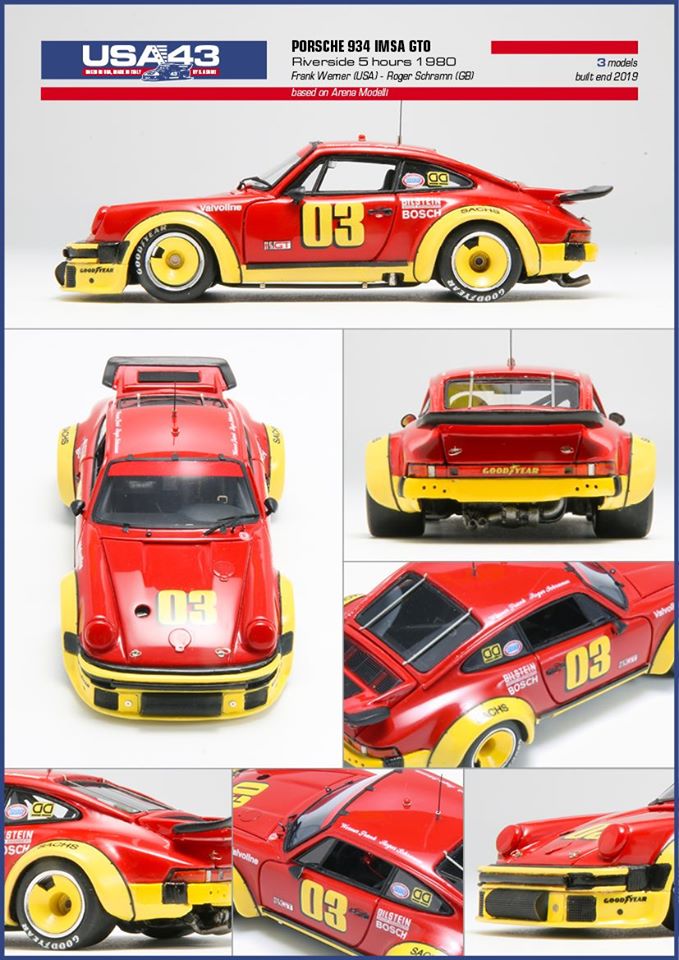 Come suo solito, molte le modifiche apportate per queste versioni che interesseranno sicuramente diverse fasce di appassionati. Si tratta della 934 numero 03 che prese parte alla 5 Ore di Riverside 1980 con Werner Frank e Roger Schramm e della 934 numero 91 del team Electrodyne che partecipò alla 6 Ore di Mosport con Chester Vincentz e Derek Bell. Sicuramente non ce ne sarà per tutti, visto che la tiratura è limitata a tre pezzi per ciascuna versione. Questi modelli escono sotto il marchio USA43.