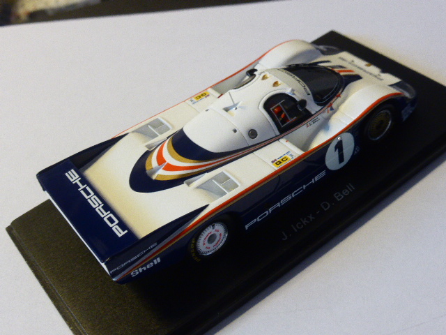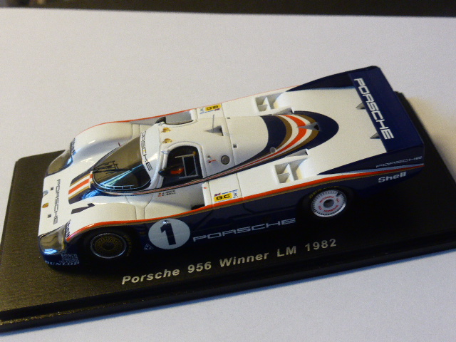 La Porsche 956 che vinse la 24 Ore di Le Mans con Jacky Ickx e Derek Bell è arcinota, probabilmente una delle auto da corsa più conosciute di tutta la storia dell\’endurance. Fu la prima vittoria di una Gruppo C a Le Mans e l\’inizio di uno dei tanti periodi d\’oro della casa di Stoccarda nelle gare di durata, con una vettura che avrebbe marcato tutti gli anni ottanta e anche oltre. Anche all\’epoca i marchi di modelli speciali non si fecero sfuggire l\’occasione, dagli specialisti francesi della resina al metallo bianco, e ci si mise abbastanza presto anche un leader dei diecast qual era allora la Vitesse a sviluppare la tematica Porsche 956 (a coda lunga) con una serie infinita di versioni.