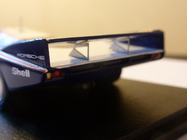 Già il modello attuale è più valido perché beneficia della modifica dell\’altezza del tetto, troppo sfuggente sui primi esemplari della 956 fatti da Spark, un difetto corretto nelle edizioni successive. Notiamo anche gli autoventilanti sono ora molto più fini e la la \”dentellatura\” del perimetro è ora ricavata con una fotoincisione e non più con un pezzo in plastica.