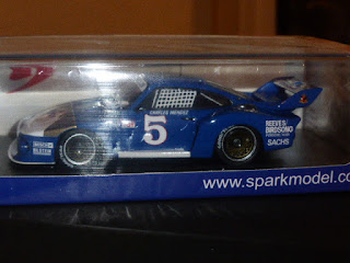 Questa livrea riporterà alla mente un modello del passato, il Top43 che riproduceva la stessa vettura, ma in versione 24 Ore di Daytona. Ecco, credo che Spark sia l\’unico dei marchi \”industriali\” (?) a far rivivere nei collezionisti emozioni quasi ancestrali. Almeno finché le generazioni che ai tempi dei Top43 o di quei modelli là erano già attive. I collezionisti del futuro accumuleranno SUV in scala 1:18. L\’idea di Spark è stata originale: riprendere la \”Busch\” ma cambiare versione. Peraltro quella vettura, nata come 934/5, nel corso degli anni assunse le sembianze definitive di una 935, disputando l\’intera stagione IMSA 1979 con i colori bianchi e blu dello sponsor delle birre. Una sorta di omaggio al vecchio Top43, mantenendo ben aperto lo sguardo sul futuro. Solo chi conosce bene la storia del modellismo, oltre che quella dell\’automobilismo, può scegliere soggetti di questo genere.
