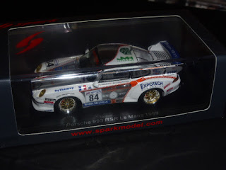 Le Mans 1999: questa volta una semi-stranezza, in mezzo a tante 993 GT3 e alle emergenti 996 GT3. Si tratta di una 911 modello 993 ma nella versione Carrera RSR Cup convertita alla classe LM-GT. Questa vettura fu pilotata da Ricci, Perrier e Nourry, tre nomi ciascuno dei quali meriterebbe una storia a parte. Renaissance ha recentemente realizzato un transkit di questa RSR, da utilizzare su base Tamiya 1:24. Anche in questo caso lo Spark non delude, con la decorazione realizzata in film cromato, vetri riportati (realistici in questa vettura, non frutto di un banale compromesso come su certe BMW M3 e anche sulle 993 GT2 dello stesso marchio). Si apprezza in generale uno sforzo supplmentare di dettaglio. A differenza di altri marchi del passato, Spark sta cercando di migliorarsi ancora, cosa che Starter e Provence Moulage prima e Minichamps poi non seppero o non vollero fare. Insomma è ancora lontano il momento in cui arriverà un concorrente serio per il gruppo di Ripert.