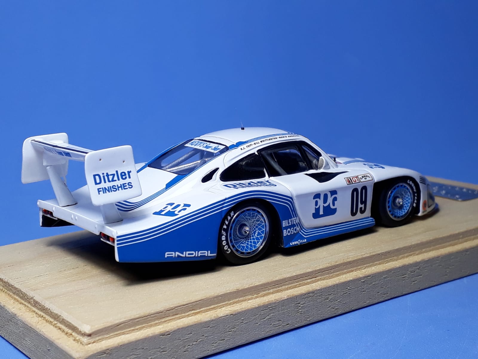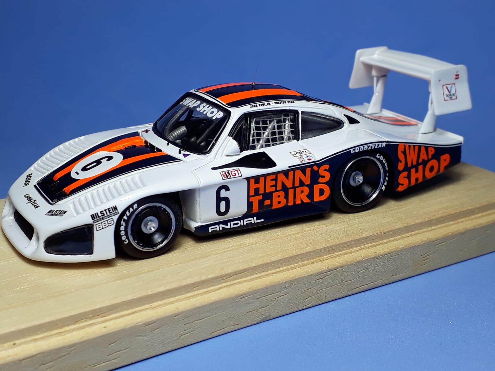 La vettura, ormai è noto anche ai meno attenti, corse in IMSA fra il 1982 e il 1985 con diverse livree e tipi di carrozzeria, che richiamavano la 935/78 Moby Dick del 1978. Dal punto di vista modellistico, per Remember e Madyero by Remember questa auto ha una storia particolare: ormai tanti anni fa, Remember realizzò il kit e il montato della versione Meister che corse a Riverside nel 1982. Fu poi la volta della Swap Shop bianca del 1985 e della Abraham arancione del 1984, ma c\’è voluto del tempo per ottenere modelli finalmente accurati.