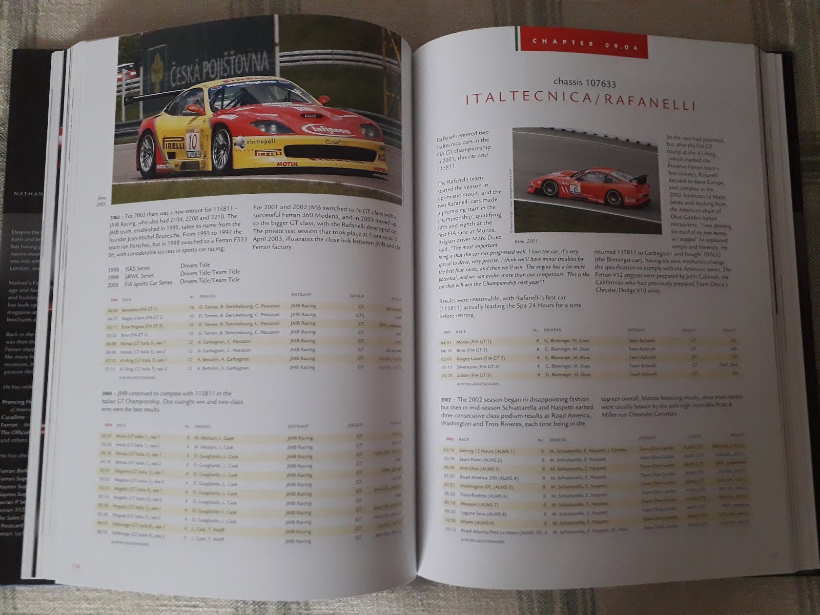 Per quanto riguarda le vetture da competizione, a ogni telaio è riservata una storia specifica, con tutti gli aggiornamenti ricevuti, le immagini e spesso anche i commenti dei vari piloti e preparatori. E\’ un lavoro di eccellente fattura, che entra nel dettaglio con spiegazioni approfondite accompagnate da una documentazione d\’epoca inedita e di ottimo livello. \”The Ferrari 550 and 575 Road and Race Legends\” può essere di grande interesse per chi si occupa di storia dell\’auto, di modellismo ma anche per il semplice appassionato che troverà testi sempre gradevoli e di grande competenza. Questo titolo resterà a lungo il punto di riferimento per la 550/575. Una curiosità: il libro è disponibile con doppia copertina, una dedicata alla 550 Maranello, l\’altra alla 575.