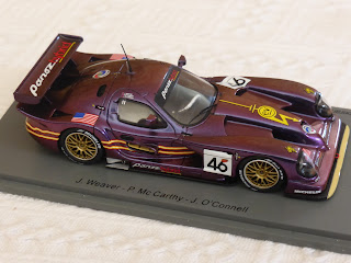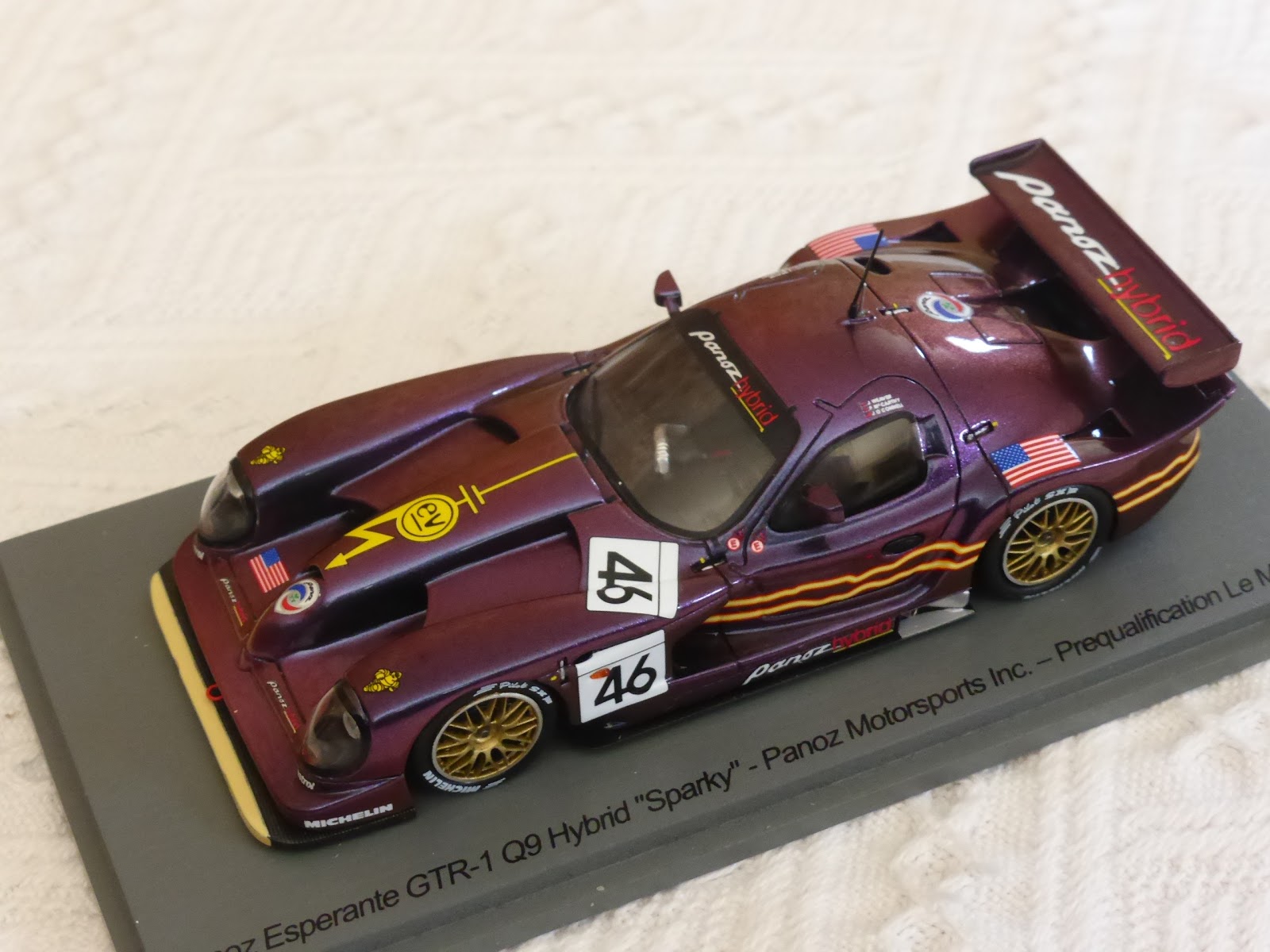 L\’idea di proporre la Q9 ibrida era tornata a MS-Models che aveva commissionato a Spark una serie limitata (numero di catalogo FS23). Adesso la Panoz violetta torna nella serie standard (S4867), che pure non è del tutto identica al modelo \”giapponese\”: qualche leggerissima variazione si nota nel posizionamento di alcune piccole decals, che probabilmente variarono nel corso della giornata di prequalifiche.