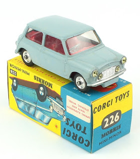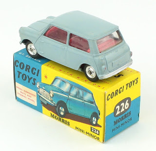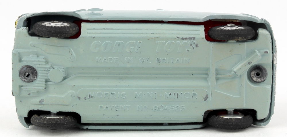 La Mini della Corgi è uno dei modelli del passato che ha avuto più varianti, sia come numeri di catalogo sia come colorazioni e versioni. Ed è anche uno dei modelli di cui spuntano, abbastanza frequentemente, varianti particolari, che fanno pensare a dei pre-serie o a delle produzioni limitatissime di cui si erano perse le tracce. E\’ apparsa di recente una stranissima configurazione ibrida, con carrozzeria del numero di catalogo 321 (la vettura da rally \”autografata\” da Timo Makinen e Paul Easter, vincitori del Rally Monte Carlo 1966) e fondino utilizzato normalmente sulla 266, vale a dire la Morris Mini. Il modello è verniciato in grigio chiaro e presenta, visto che come si è detto la carrozzeria è quella della 321, la calandra provvista dei due fendinebbia a brillantino gialli.