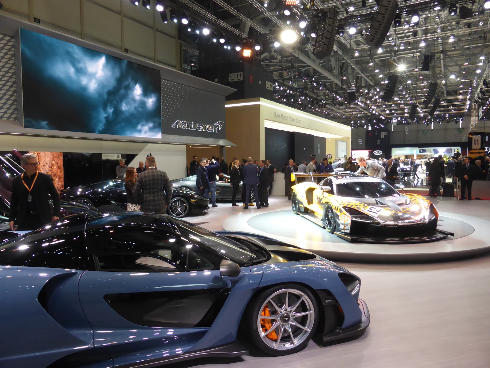 | Lo stand McLaren al Salone di Ginevra 2018 in occasione della presentazione della McLaren Senna (foto David Tarallo). |