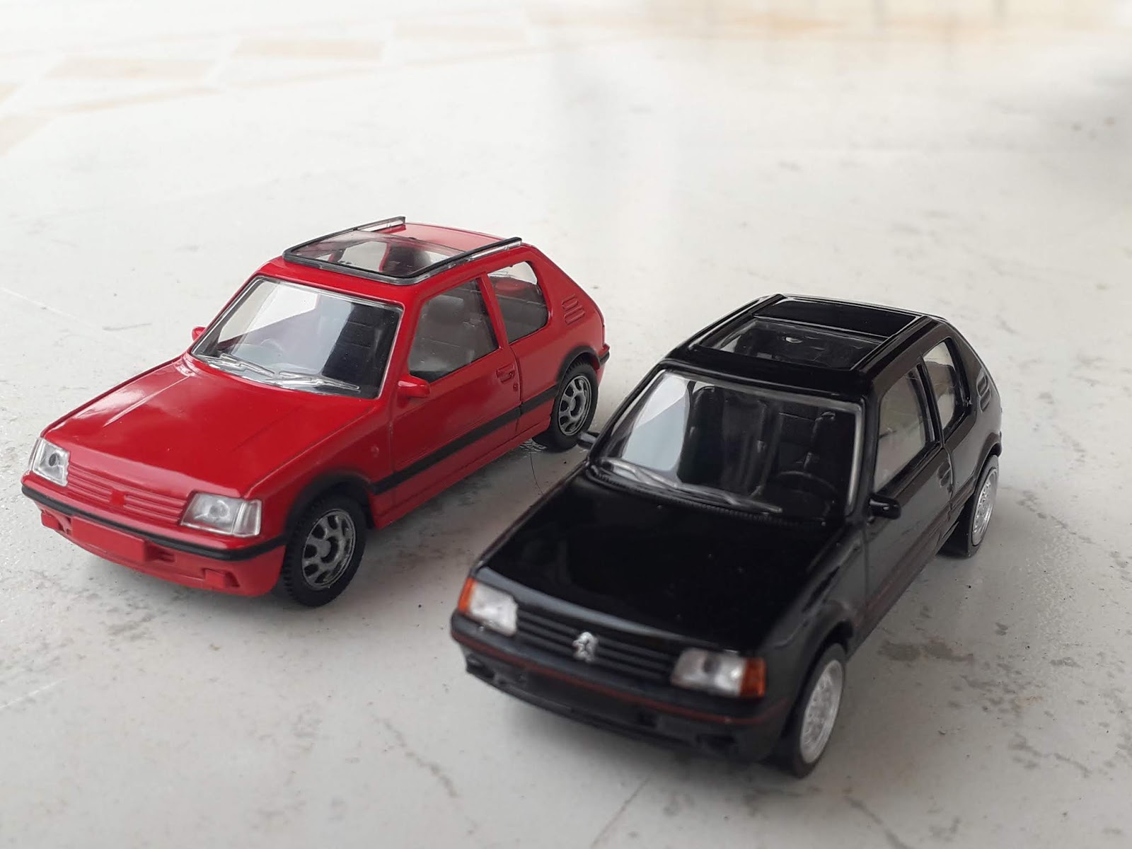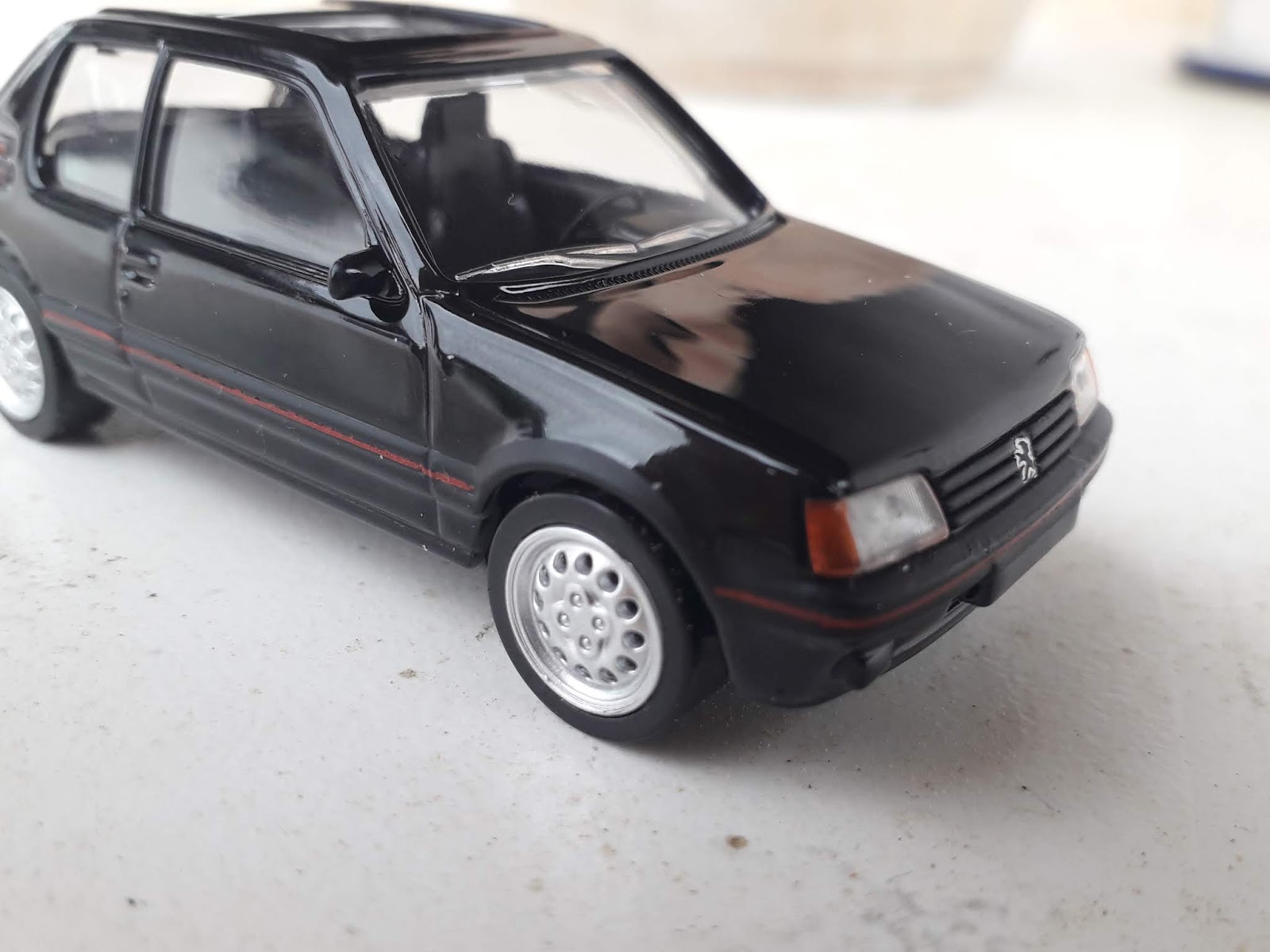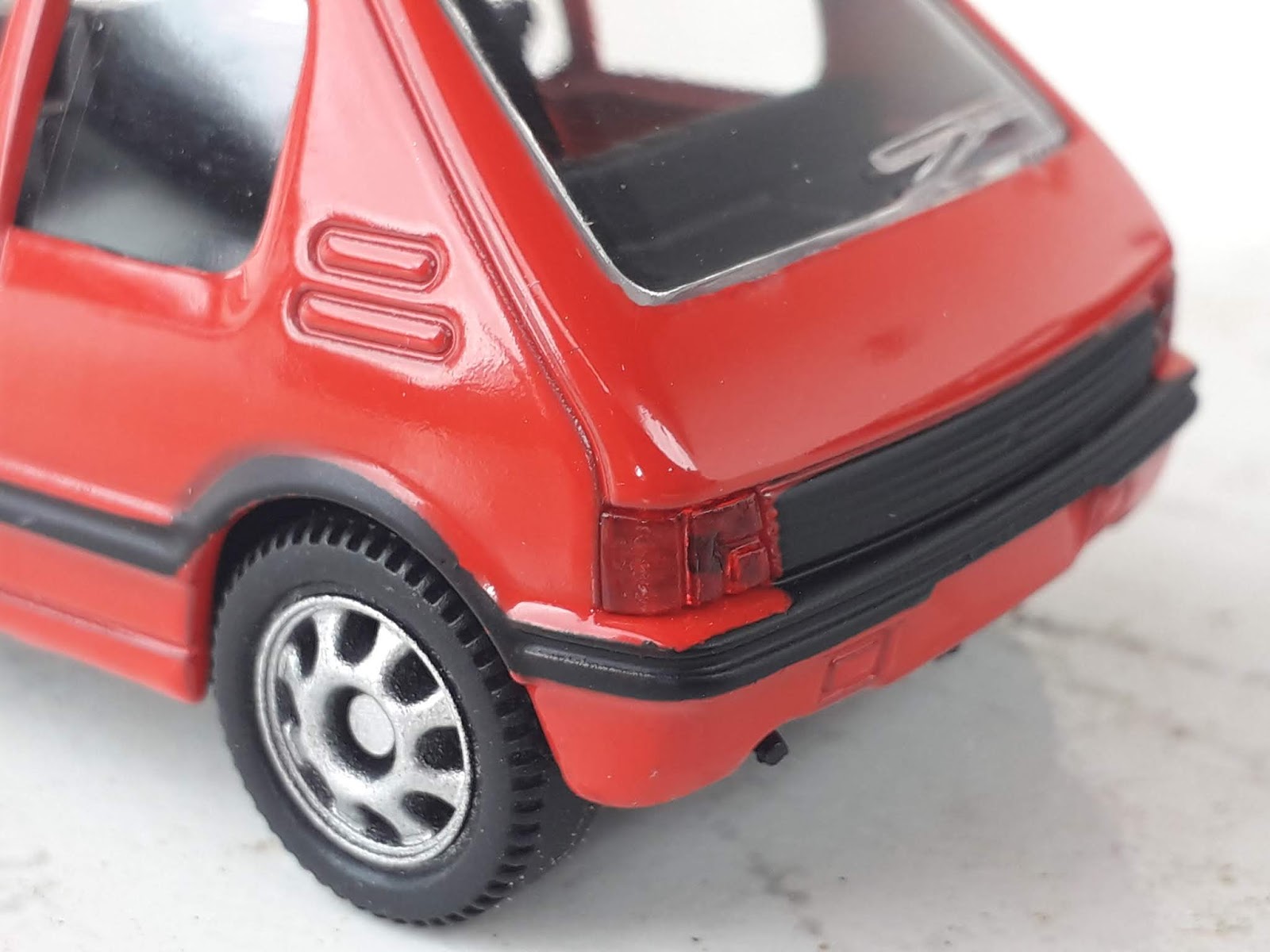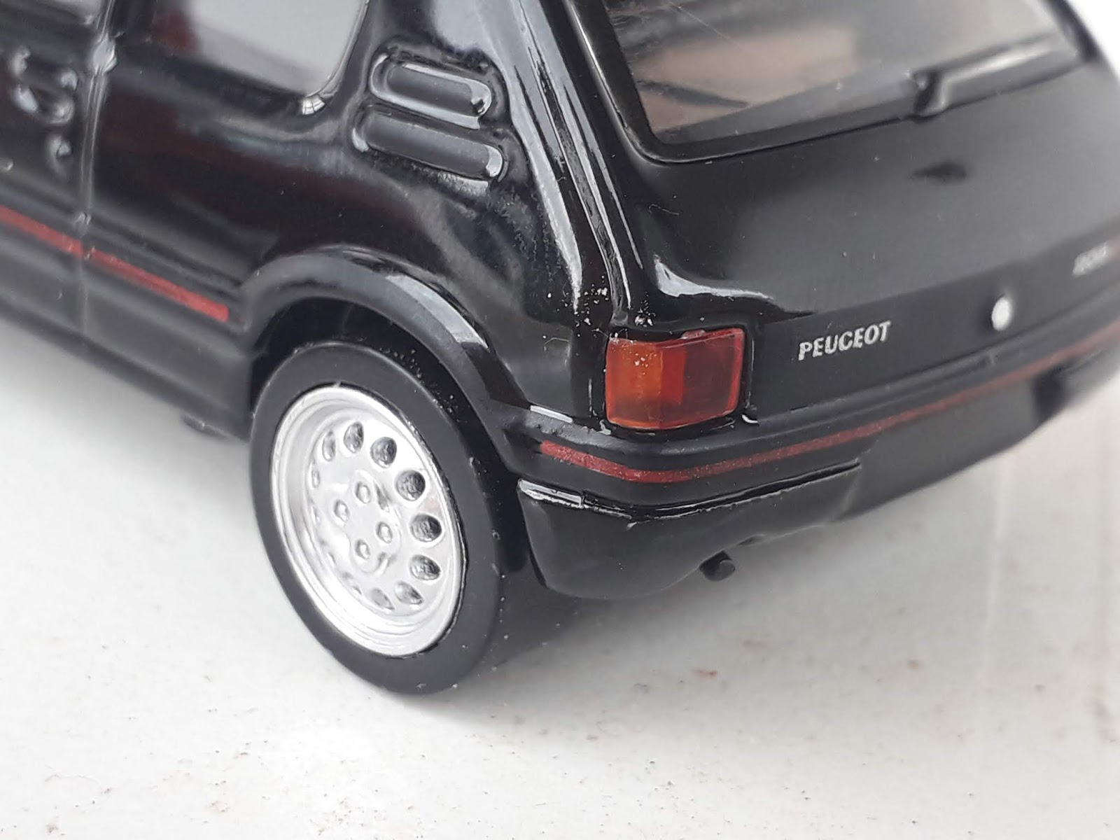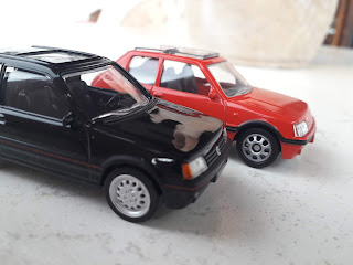 | La 205 GTI di Mondo Motors è sprovvista di tutte le tampografie che rendono la Jet-Car più gradevole e realistica. Gli stampi si somigliano molto. |