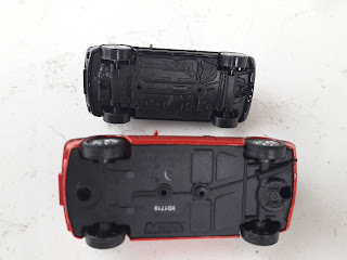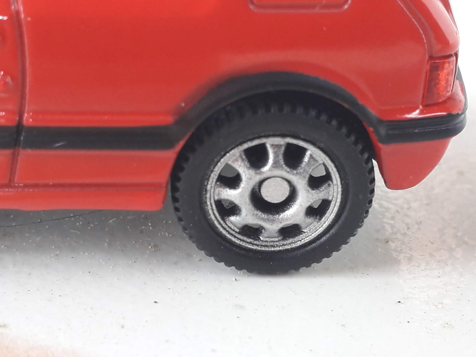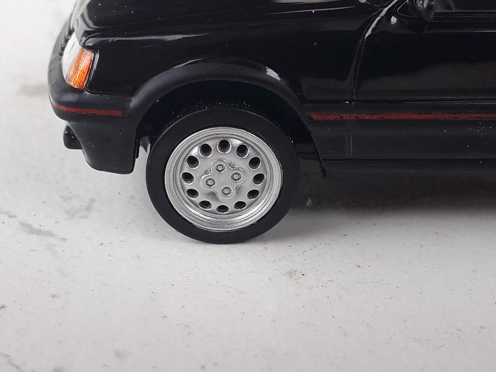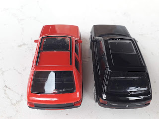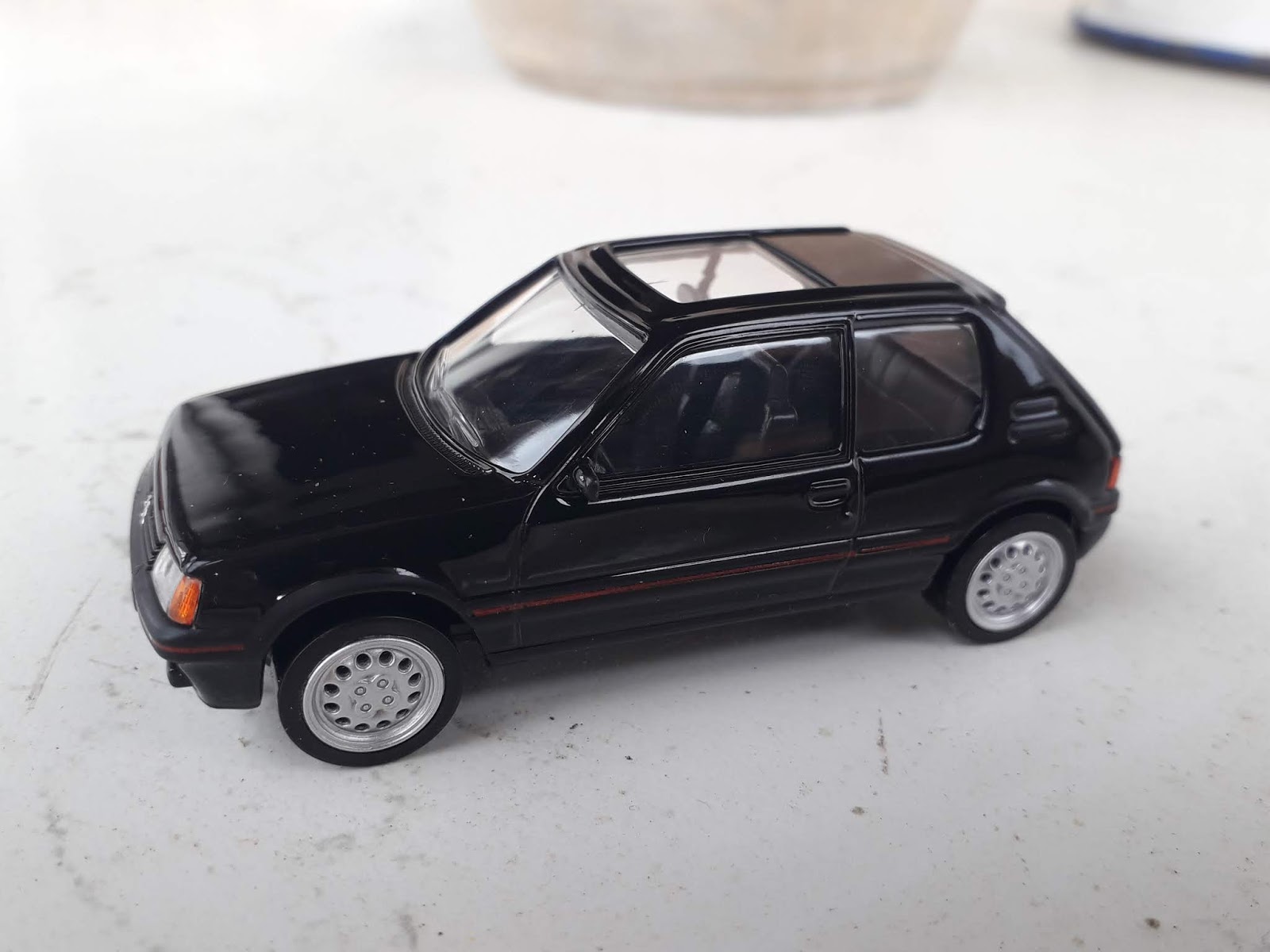 | La 205 GTI di Mondo Motors è sprovvista di tutte le tampografie che rendono la Jet-Car più gradevole e realistica. Gli stampi si somigliano molto. |