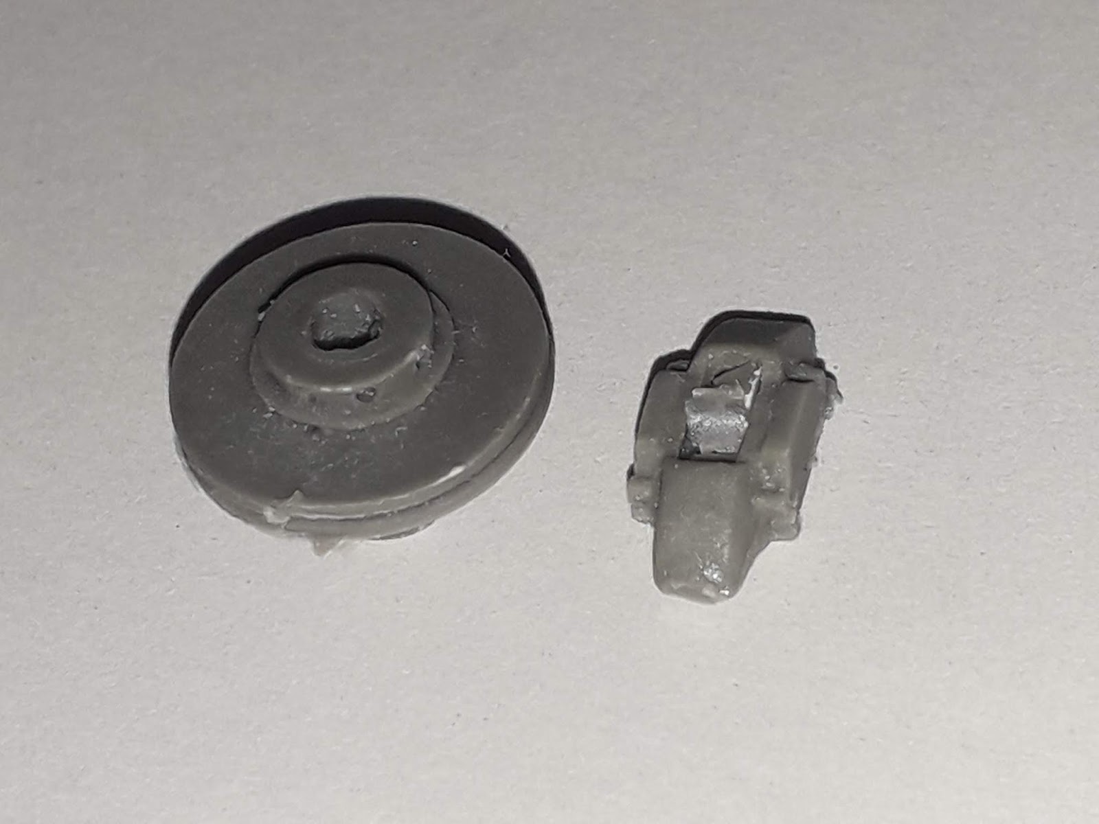 | Il disco freno e la relativa pinza, stampati in resina. |