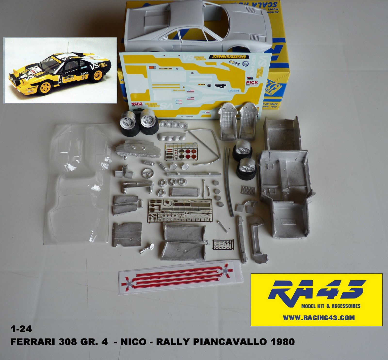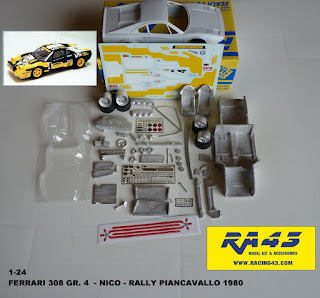 Davide Peraro di Racing43 ci invia le foto di nuovi kit disponibili da poco. In scala 1:24 troviamo la Ferrari 308 GTB Gruppo 4 e la Delta Evo Gruppo A; in 1:43 sono state realizzate le Escort Kit Car e Kit Car Evo. Le versioni delle foto che presentiamo in questo thread non sono le sole ad essere state previste per questa nuova serie di kit Racing43.