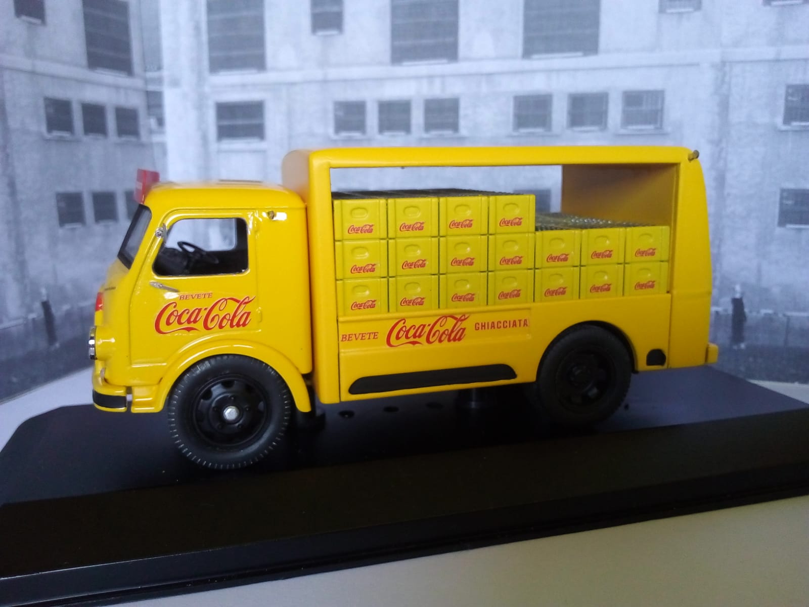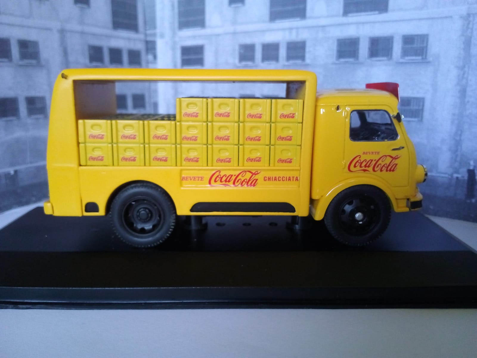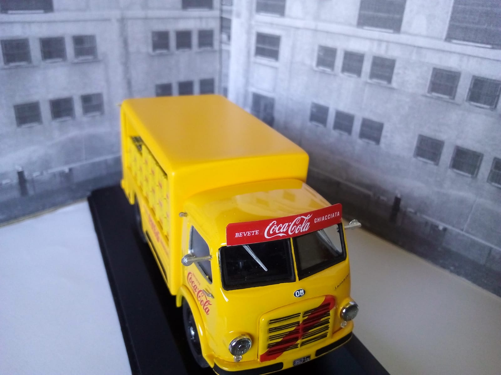 Il secondo mezzo con cui il marchio \”nonomologati\” lancia una gamma camion in 1:43 è un OM Leoncino nella vecchia livrea Coca Cola. Base di partenza è il mezzo pubblicitario delle bibite Giommi uscito in edicola. Anche per questo OM non si è trattato di una semplice riverniciatura: è stato ad esempio ricostruito integralmente il tetto con fogli di plasticard, incollati a strati, stuccati e carteggiati.