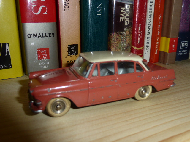 Intanto, a compensare il mancato acquisto della Rekord celeste, arrivò dopo un po\’ di tempo la versione Taxi, rara seppure non rarissima e interessante perché dimostra il tentativo di riciclare un modello vecchiotto in un mercato geograficamente delimitato come quello tedesco (la scatola riporta le descrizioni in tedesco, che non furono modificate neanche quando la Rekord Taxi venne commercializzata anche in Francia). Inutile ricordarvi di Opel Rekord Dinky molto più rare, come una tonalità di blu più scura rispetto a quella \”italiana\” e le versioni sudafricane, per le quali sono necessarie svariate migliaia di euro.